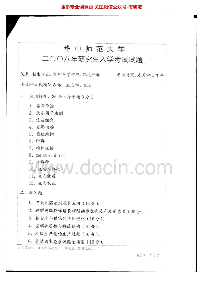 华中师范大学851生态学2007-2008考研真题汇编.Image.Marked-学习资源网 - 分享优质学习资料