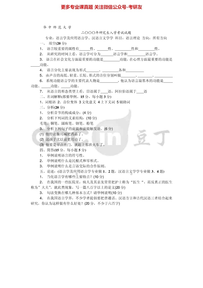 华中师范大学汉语语言学历年真题2000-2011考研真题汇编.Image.Marked猴哥6个月前发布关注私信3.54MB55页04065华中师范大学汉语语言学历年真题2000-2011考研真题汇编.Image.Marked此内容为免费资源,请登录后查看¥0 登录查看免费资源 第1页 / 共55页 第2页 / 共55页 第3页 / 共55页 该文档为免费文档,您可直接下载完整版进行阅读 © 版权声明文章版权归作者所有,未经允许请勿转载。THE END考研专业课 喜欢就支持一下吧点赞65赞赏 分享QQ空间微博QQ好友海报分享复制链接收藏