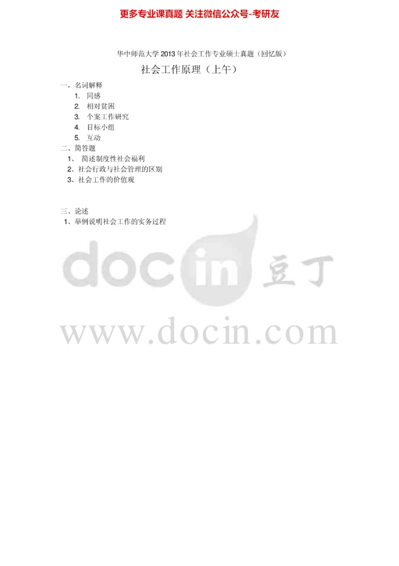 华中师范大学社会工作原理2010、2012-2015考研真题汇编.Image.Marked猴哥6个月前发布关注私信0.29MB5页08744华中师范大学社会工作原理2010、2012-2015考研真题汇编.Image.Marked此内容为免费资源,请登录后查看¥0 登录查看免费资源 第1页 / 共5页 第2页 / 共5页 第3页 / 共5页 该文档为免费文档,您可直接下载完整版进行阅读 © 版权声明文章版权归作者所有,未经允许请勿转载。THE END考研专业课 喜欢就支持一下吧点赞44赞赏 分享QQ空间微博QQ好友海报分享复制链接收藏