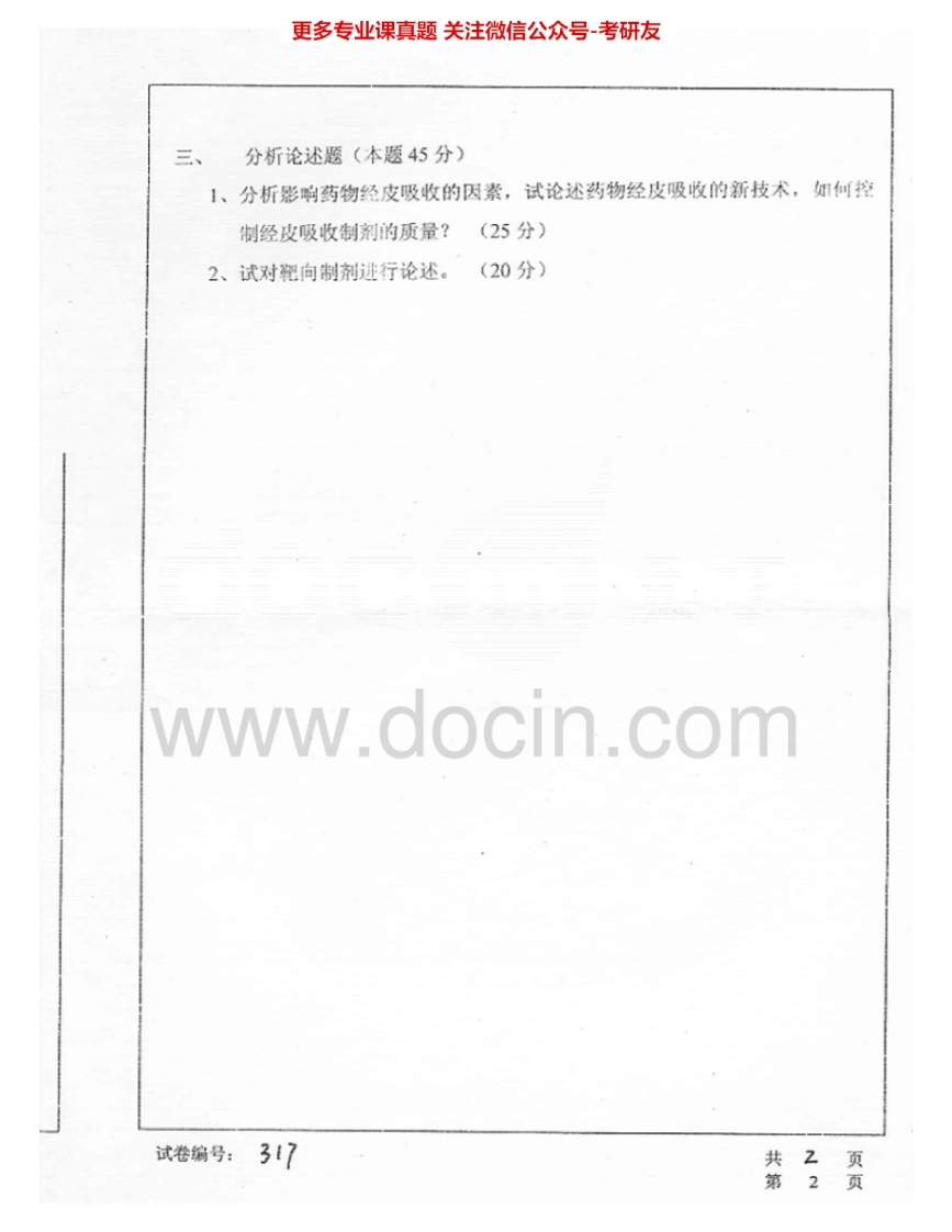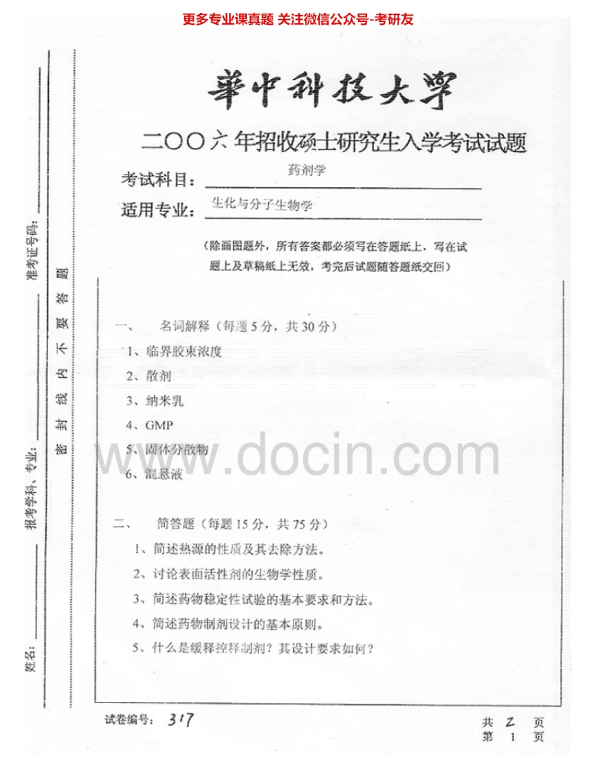 华中科技大学836药剂学2005-2006考研真题汇编.Image.Marked猴哥6个月前发布关注私信0.76MB3页03638华中科技大学836药剂学2005-2006考研真题汇编.Image.Marked此内容为免费资源,请登录后查看¥0 登录查看免费资源 第1页 / 共3页 第2页 / 共3页 第3页 / 共3页 已完成全部阅读,共3页 © 版权声明文章版权归作者所有,未经允许请勿转载。THE END考研专业课 喜欢就支持一下吧点赞38赞赏 分享QQ空间微博QQ好友海报分享复制链接收藏