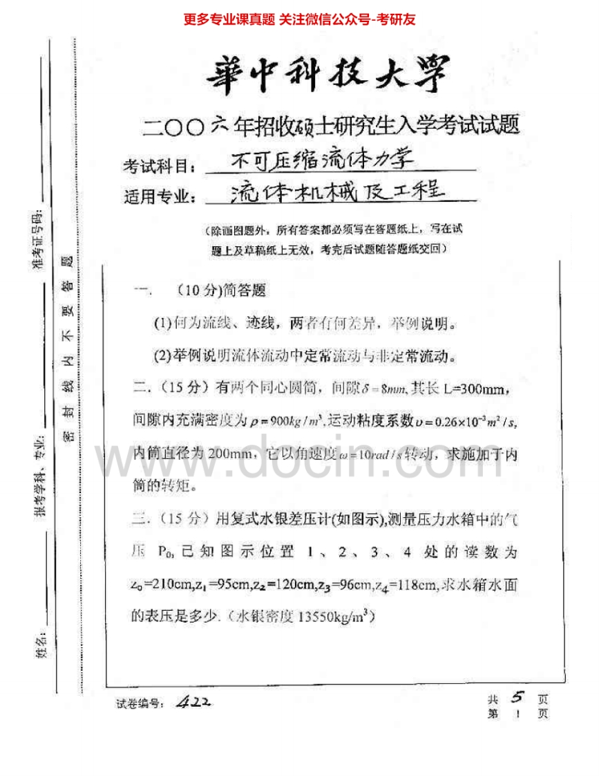 华中科技大学869流体力学与水力学:流体力学2001、2006-2007考研真题汇编.Image.Marked猴哥6个月前发布关注私信3.83MB11页07619华中科技大学869流体力学与水力学:流体力学2001、2006-2007考研真题汇编.Image.Marked此内容为免费资源,请登录后查看¥0 登录查看免费资源 第1页 / 共11页 第2页 / 共11页 第3页 / 共11页 该文档为免费文档,您可直接下载完整版进行阅读 © 版权声明文章版权归作者所有,未经允许请勿转载。THE END考研专业课 喜欢就支持一下吧点赞19赞赏 分享QQ空间微博QQ好友海报分享复制链接收藏