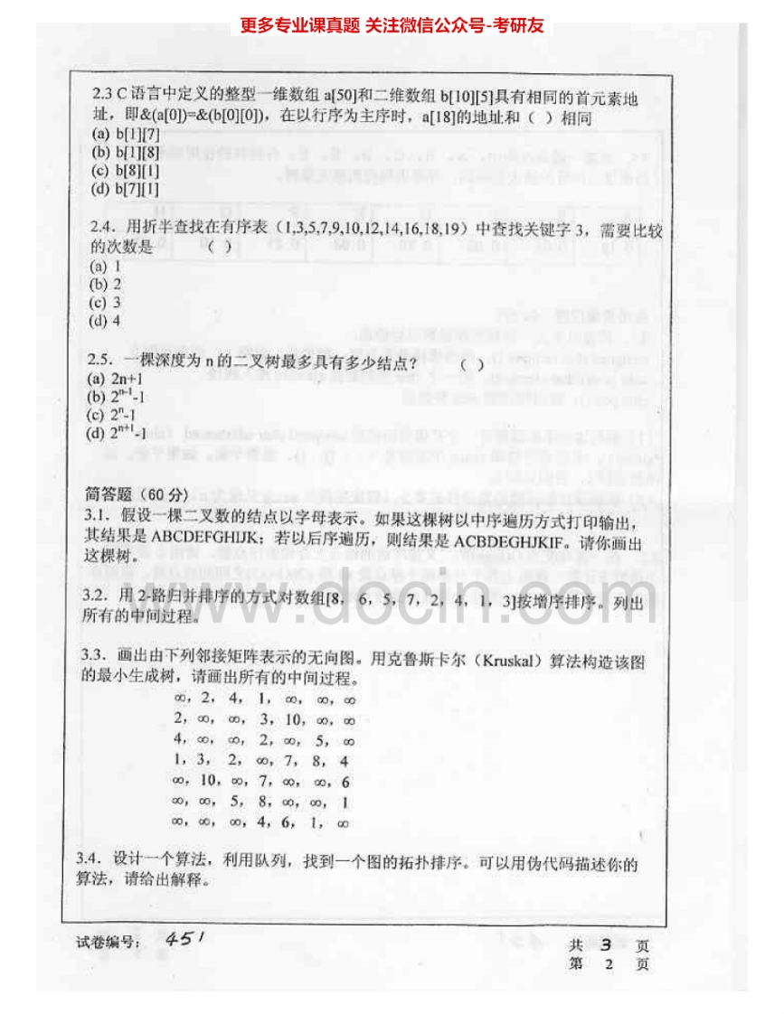 华中科技大学887数据结构与算法分析2006-2007考研真题汇编.Image.Marked猴哥6个月前发布关注私信2.53MB6页08634华中科技大学887数据结构与算法分析2006-2007考研真题汇编.Image.Marked此内容为免费资源,请登录后查看¥0 登录查看免费资源 第1页 / 共6页 第2页 / 共6页 第3页 / 共6页 该文档为免费文档,您可直接下载完整版进行阅读 © 版权声明文章版权归作者所有,未经允许请勿转载。THE END考研专业课 喜欢就支持一下吧点赞34赞赏 分享QQ空间微博QQ好友海报分享复制链接收藏
