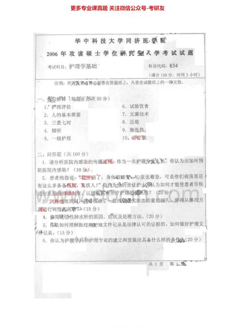 华中科技大学护理学基础2004-2006考研真题汇编猴哥6个月前发布关注私信1.05MB3页07425华中科技大学护理学基础2004-2006考研真题汇编此内容为免费资源,请登录后查看¥0 登录查看免费资源 第1页 / 共3页 第2页 / 共3页 第3页 / 共3页 已完成全部阅读,共3页 © 版权声明文章版权归作者所有,未经允许请勿转载。THE END考研专业课 喜欢就支持一下吧点赞25赞赏 分享QQ空间微博QQ好友海报分享复制链接收藏