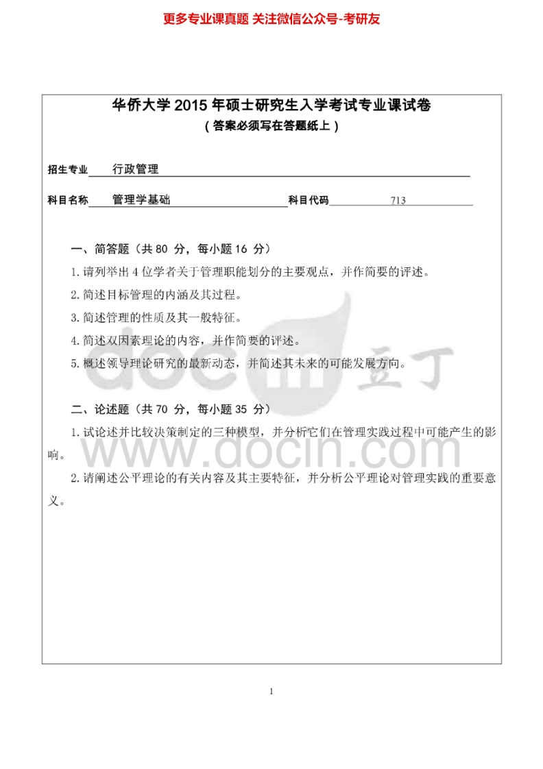 华侨大学713管理学基础2014-2015考研真题汇编.Image.Marked猴哥6个月前发布关注私信0.12MB2页07362华侨大学713管理学基础2014-2015考研真题汇编.Image.Marked此内容为免费资源,请登录后查看¥0 登录查看免费资源 第1页 / 共2页 第2页 / 共2页 已完成全部阅读,共2页 © 版权声明文章版权归作者所有,未经允许请勿转载。THE END《华侨大学》(713)无机化学考研资料考研专业课 喜欢就支持一下吧点赞62赞赏 分享QQ空间微博QQ好友海报分享复制链接收藏