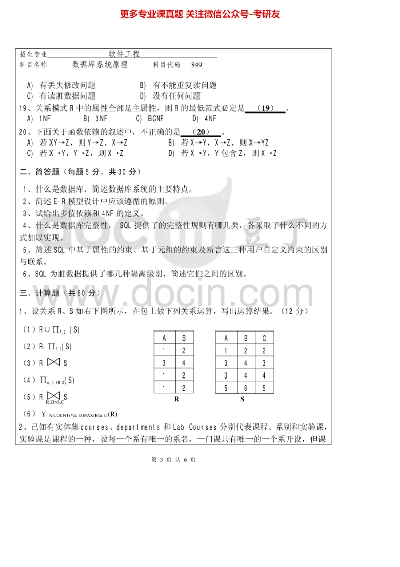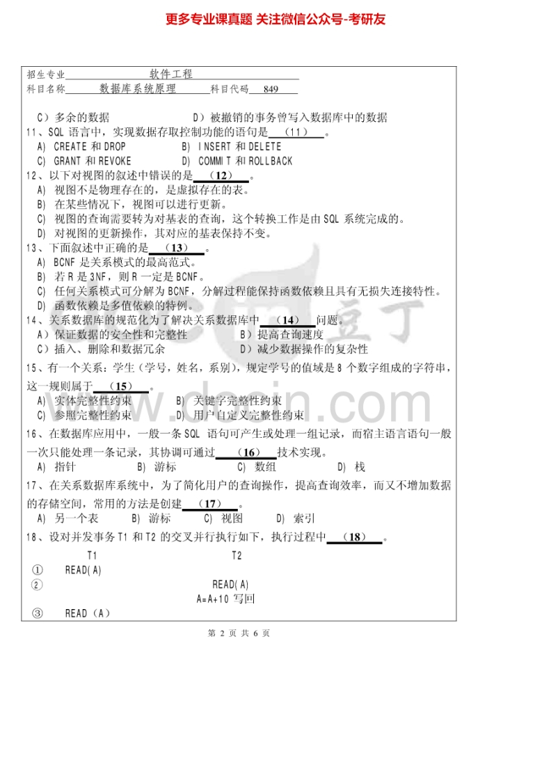 华侨大学849数据库系统原理2012-2015考研真题汇编.Image.Marked猴哥6个月前发布关注私信1.90MB24页04924华侨大学849数据库系统原理2012-2015考研真题汇编.Image.Marked此内容为免费资源,请登录后查看¥0 登录查看免费资源 第1页 / 共24页 第2页 / 共24页 第3页 / 共24页 该文档为免费文档,您可直接下载完整版进行阅读 © 版权声明文章版权归作者所有,未经允许请勿转载。THE END考研专业课 喜欢就支持一下吧点赞24赞赏 分享QQ空间微博QQ好友海报分享复制链接收藏
