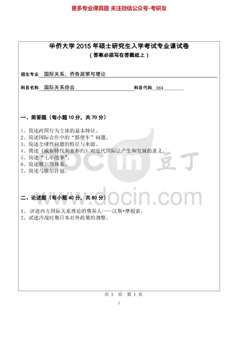 华侨大学884国际关系综合2014-2015考研真题汇编.Image.Marked猴哥6个月前发布关注私信0.12MB2页04053华侨大学884国际关系综合2014-2015考研真题汇编.Image.Marked此内容为免费资源,请登录后查看¥0 登录查看免费资源 第1页 / 共2页 第2页 / 共2页 已完成全部阅读,共2页 © 版权声明文章版权归作者所有,未经允许请勿转载。THE END考研专业课 喜欢就支持一下吧点赞53赞赏 分享QQ空间微博QQ好友海报分享复制链接收藏