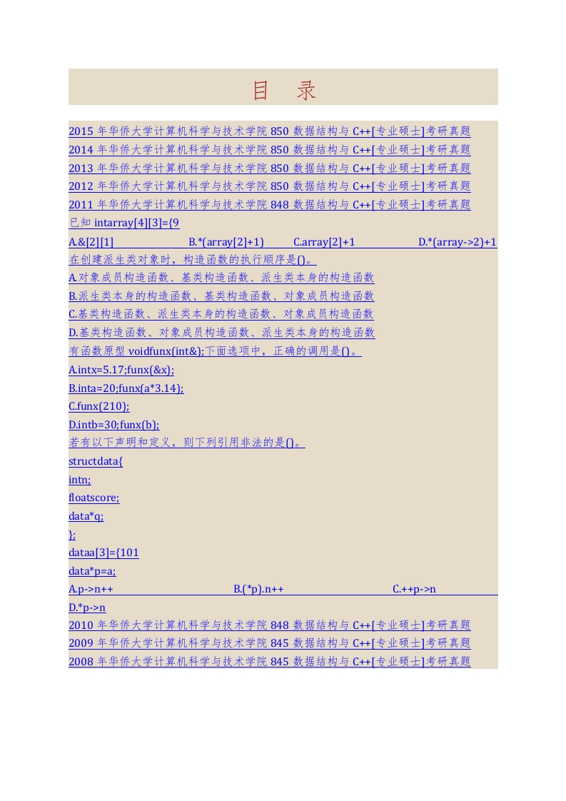 华侨大学计算机科学与技术学院850数据结构与C++[专业硕士]历年考研真题汇编猴哥6个月前发布关注私信2.86MB87页03010华侨大学计算机科学与技术学院850数据结构与C++[专业硕士]历年考研真题汇编此内容为免费资源,请登录后查看¥0 登录查看免费资源 第1页 / 共87页 第2页 / 共87页 第3页 / 共87页 该文档为免费文档,您可直接下载完整版进行阅读 © 版权声明文章版权归作者所有,未经允许请勿转载。THE END考研专业课 喜欢就支持一下吧点赞10赞赏 分享QQ空间微博QQ好友海报分享复制链接收藏