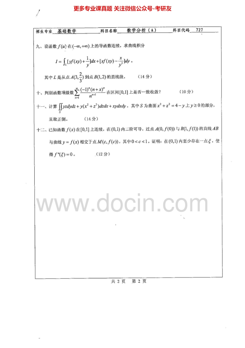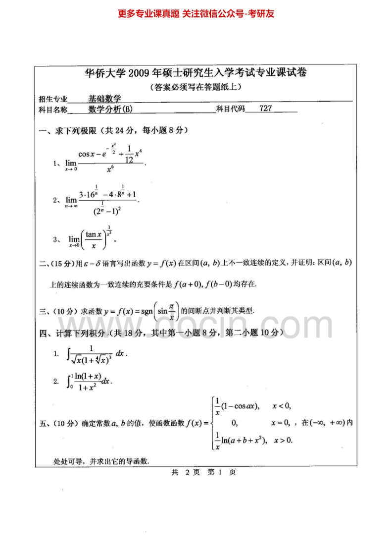 华侨大学数学分析历年真题2008-2013考研真题汇编.Image.Marked猴哥6个月前发布关注私信1.51MB14页06115华侨大学数学分析历年真题2008-2013考研真题汇编.Image.Marked此内容为免费资源,请登录后查看¥0 登录查看免费资源 第1页 / 共14页 第2页 / 共14页 第3页 / 共14页 该文档为免费文档,您可直接下载完整版进行阅读 © 版权声明文章版权归作者所有,未经允许请勿转载。THE END考研专业课 喜欢就支持一下吧点赞15赞赏 分享QQ空间微博QQ好友海报分享复制链接收藏