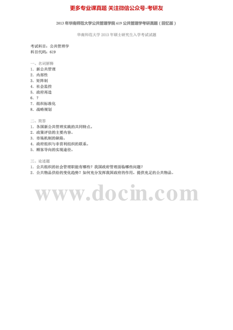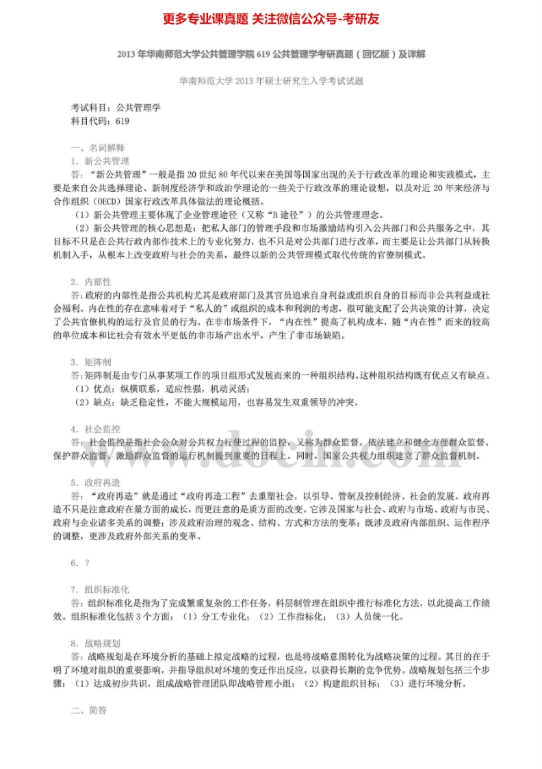 华南师范大学公共管理学2010-20142013有答案考研真题汇编.Image.Marked猴哥6个月前发布关注私信2.45MB10页03524华南师范大学公共管理学2010-20142013有答案考研真题汇编.Image.Marked此内容为免费资源,请登录后查看¥0 登录查看免费资源 第1页 / 共10页 第2页 / 共10页 第3页 / 共10页 该文档为免费文档,您可直接下载完整版进行阅读 © 版权声明文章版权归作者所有,未经允许请勿转载。THE END考研专业课 喜欢就支持一下吧点赞24赞赏 分享QQ空间微博QQ好友海报分享复制链接收藏