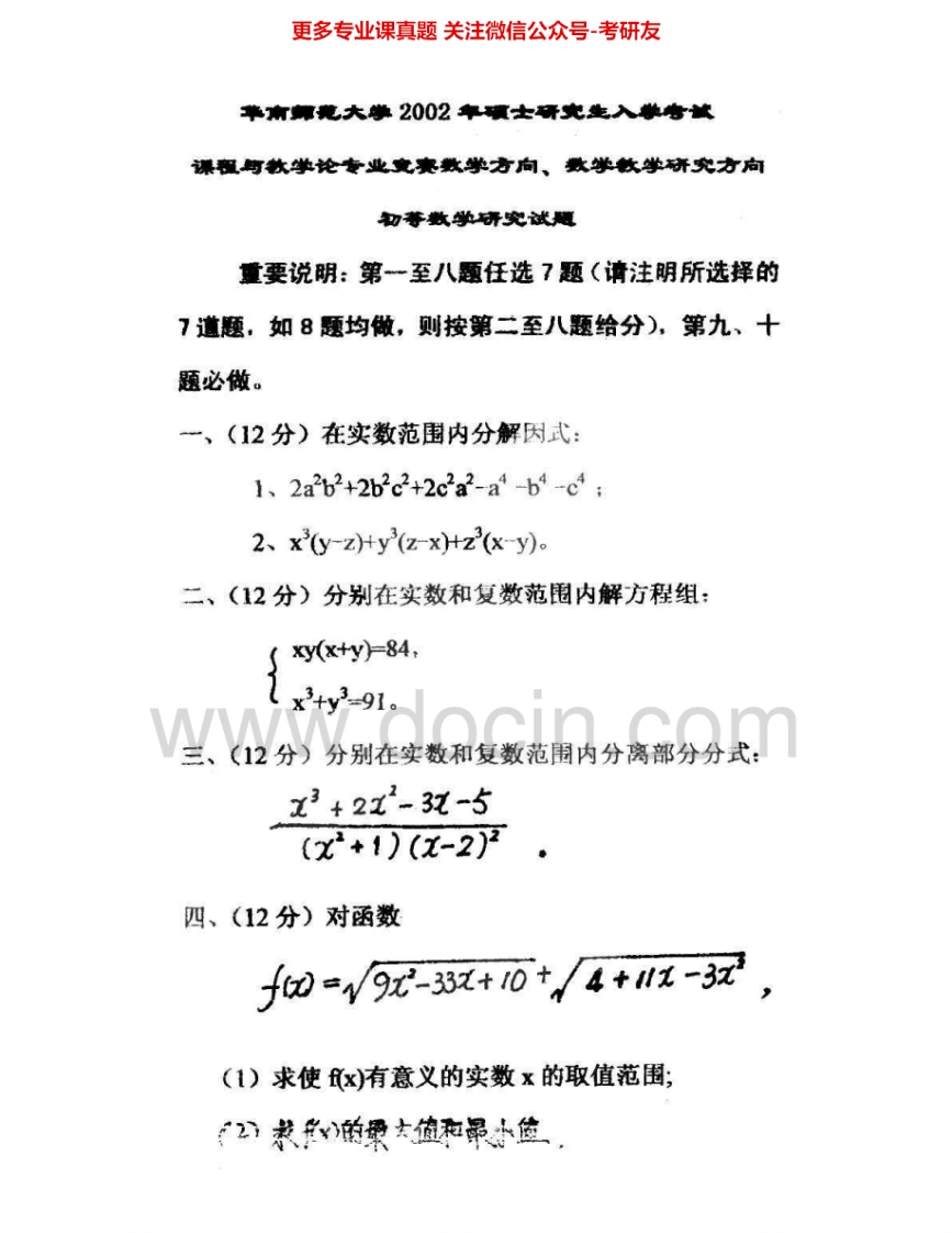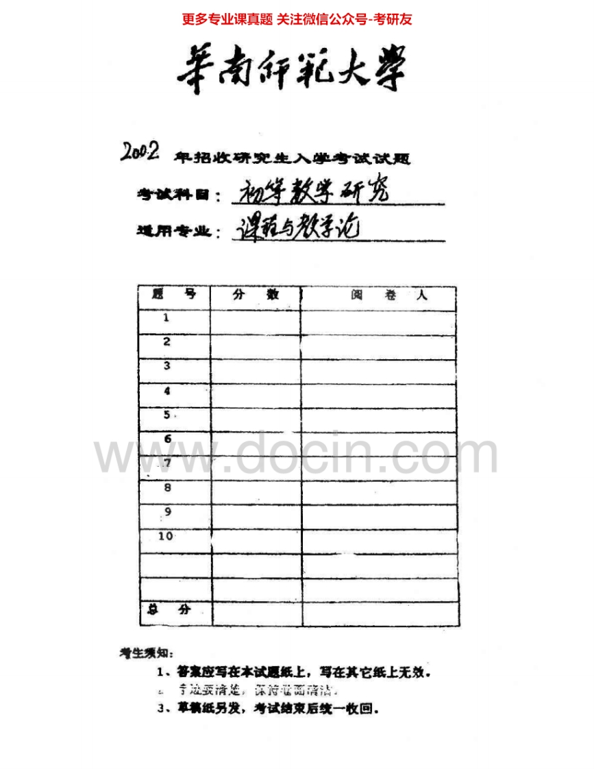 华南师范大学903初等数学研究2000、2002考研真题汇编.Image.Marked猴哥6个月前发布关注私信1.01MB4页06015华南师范大学903初等数学研究2000、2002考研真题汇编.Image.Marked此内容为免费资源,请登录后查看¥0 登录查看免费资源 第1页 / 共4页 第2页 / 共4页 第3页 / 共4页 该文档为免费文档,您可直接下载完整版进行阅读 © 版权声明文章版权归作者所有,未经允许请勿转载。THE END《华南师范大学》(903)高等数学综合考研资料考研专业课 喜欢就支持一下吧点赞15赞赏 分享QQ空间微博QQ好友海报分享复制链接收藏