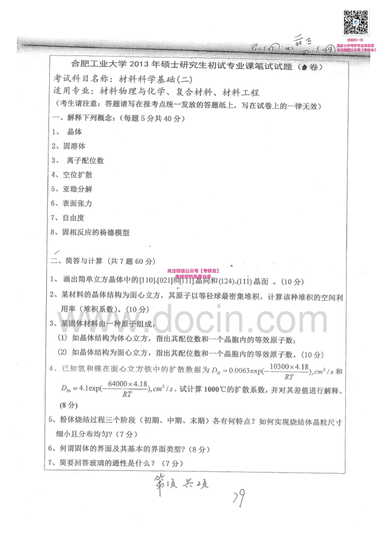 合肥工业大学材料科学基础(二)2012-2013考研真题汇编猴哥6个月前发布关注私信1.08MB4页04911合肥工业大学材料科学基础(二)2012-2013考研真题汇编此内容为免费资源,请登录后查看¥0 登录查看免费资源 第1页 / 共4页 第2页 / 共4页 第3页 / 共4页 该文档为免费文档,您可直接下载完整版进行阅读 © 版权声明文章版权归作者所有,未经允许请勿转载。THE END考研专业课 喜欢就支持一下吧点赞11赞赏 分享QQ空间微博QQ好友海报分享复制链接收藏