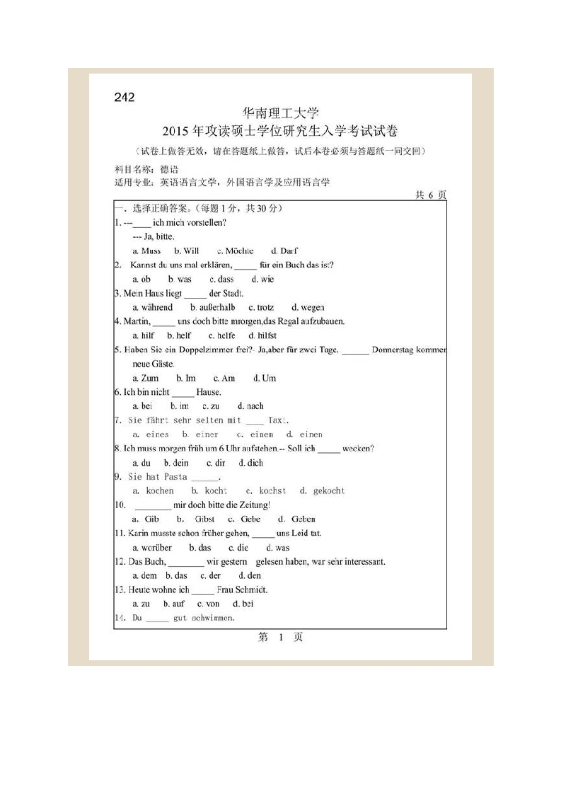 华南理工大学外国语学院242德语历年考研真题汇编猴哥6个月前发布关注私信4.20MB102页09757华南理工大学外国语学院242德语历年考研真题汇编此内容为免费资源,请登录后查看¥0 登录查看免费资源 第1页 / 共102页 第2页 / 共102页 第3页 / 共102页 该文档为免费文档,您可直接下载完整版进行阅读 © 版权声明文章版权归作者所有,未经允许请勿转载。THE END考研专业课 喜欢就支持一下吧点赞57赞赏 分享QQ空间微博QQ好友海报分享复制链接收藏