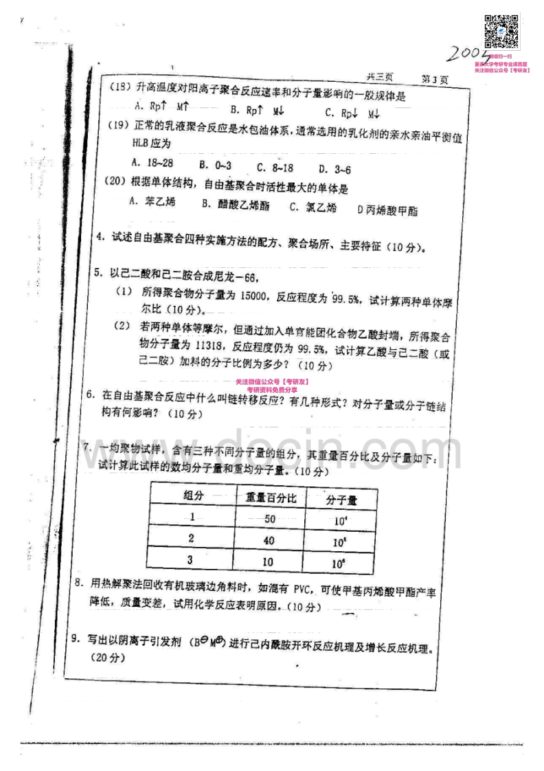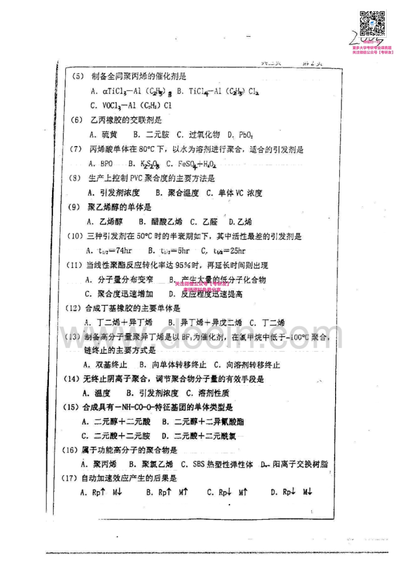 合肥工业大学809高分子化学2003-2008考研真题汇编-学习资源网 - 分享优质学习资料
