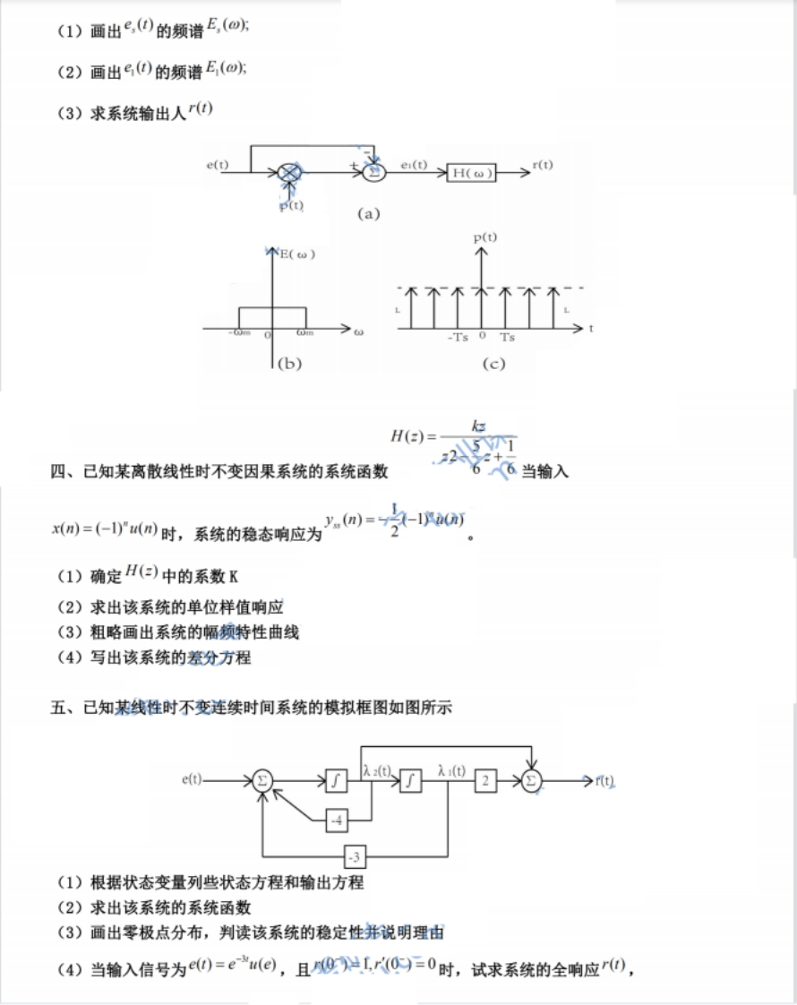 哈尔滨工业大学803信号与系统和数字逻辑电路2019考研真题试卷