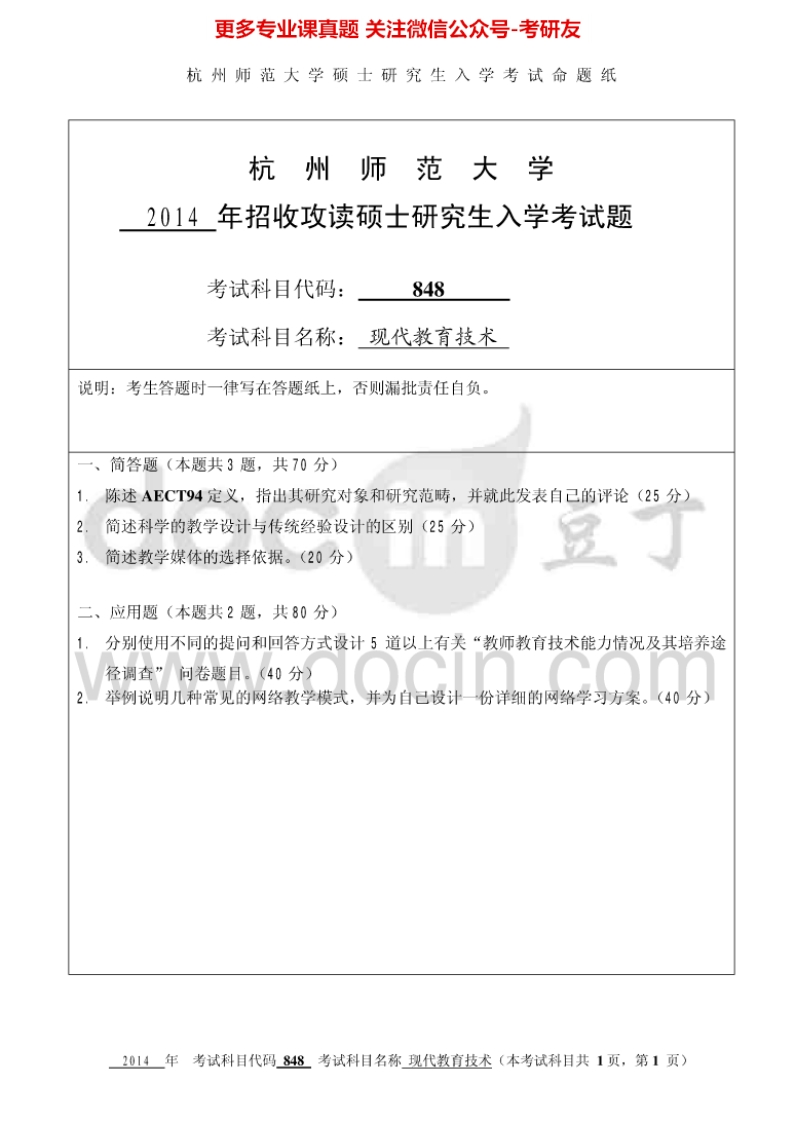 杭州师范大学851现代教育技术考研真题汇编猴哥6个月前发布关注私信0.19MB3页04638杭州师范大学851现代教育技术考研真题汇编此内容为免费资源,请登录后查看¥0 登录查看免费资源 第1页 / 共3页 第2页 / 共3页 第3页 / 共3页 已完成全部阅读,共3页 © 版权声明文章版权归作者所有,未经允许请勿转载。THE END考研专业课 喜欢就支持一下吧点赞38赞赏 分享QQ空间微博QQ好友海报分享复制链接收藏