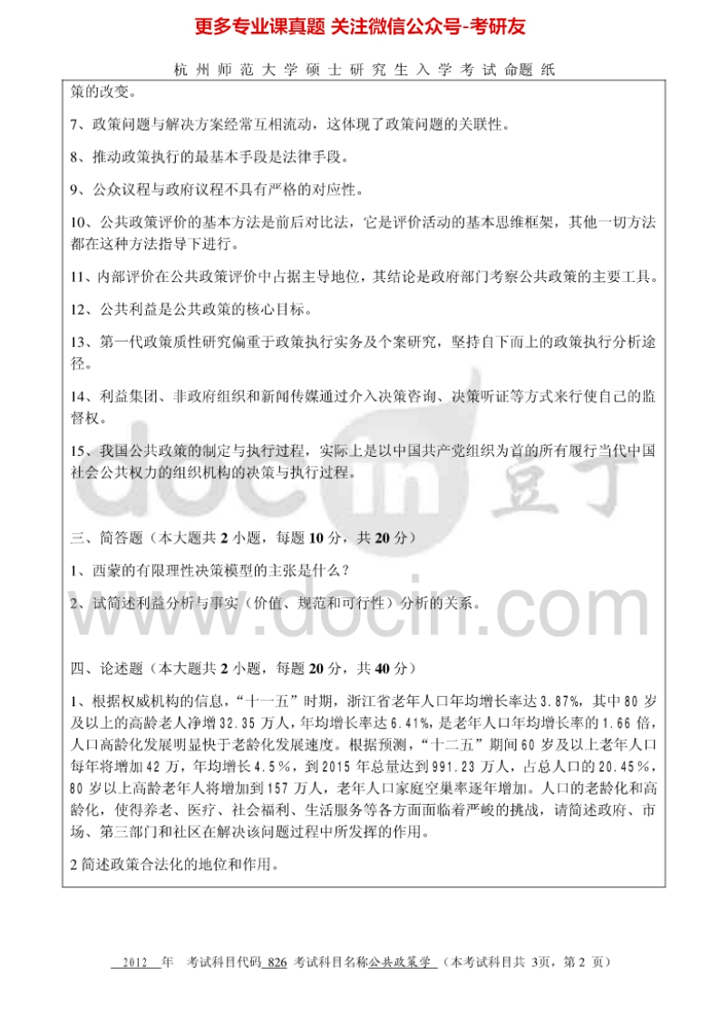 杭州师范大学公共政策学考研真题汇编猴哥6个月前发布关注私信0.46MB7页09550杭州师范大学公共政策学考研真题汇编此内容为免费资源,请登录后查看¥0 登录查看免费资源 第1页 / 共7页 第2页 / 共7页 第3页 / 共7页 该文档为免费文档,您可直接下载完整版进行阅读 © 版权声明文章版权归作者所有,未经允许请勿转载。THE END考研专业课 喜欢就支持一下吧点赞50赞赏 分享QQ空间微博QQ好友海报分享复制链接收藏