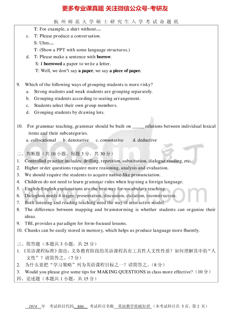 杭州师范大学846英语教学基础知识考研真题汇编猴哥6个月前发布关注私信3.26MB12页07166杭州师范大学846英语教学基础知识考研真题汇编此内容为免费资源,请登录后查看¥0 登录查看免费资源 第1页 / 共12页 第2页 / 共12页 第3页 / 共12页 该文档为免费文档,您可直接下载完整版进行阅读 © 版权声明文章版权归作者所有,未经允许请勿转载。THE END考研专业课 喜欢就支持一下吧点赞66赞赏 分享QQ空间微博QQ好友海报分享复制链接收藏