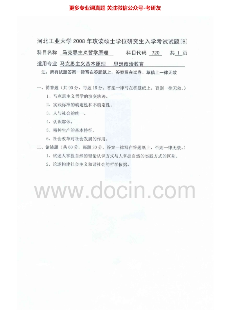 河北工业大学720马克思主义哲学原理2007-2012考研真题汇编猴哥6个月前发布关注私信1.79MB7页06523河北工业大学720马克思主义哲学原理2007-2012考研真题汇编此内容为免费资源,请登录后查看¥0 登录查看免费资源 第1页 / 共7页 第2页 / 共7页 第3页 / 共7页 该文档为免费文档,您可直接下载完整版进行阅读 © 版权声明文章版权归作者所有,未经允许请勿转载。THE END考研专业课 喜欢就支持一下吧点赞23赞赏 分享QQ空间微博QQ好友海报分享复制链接收藏