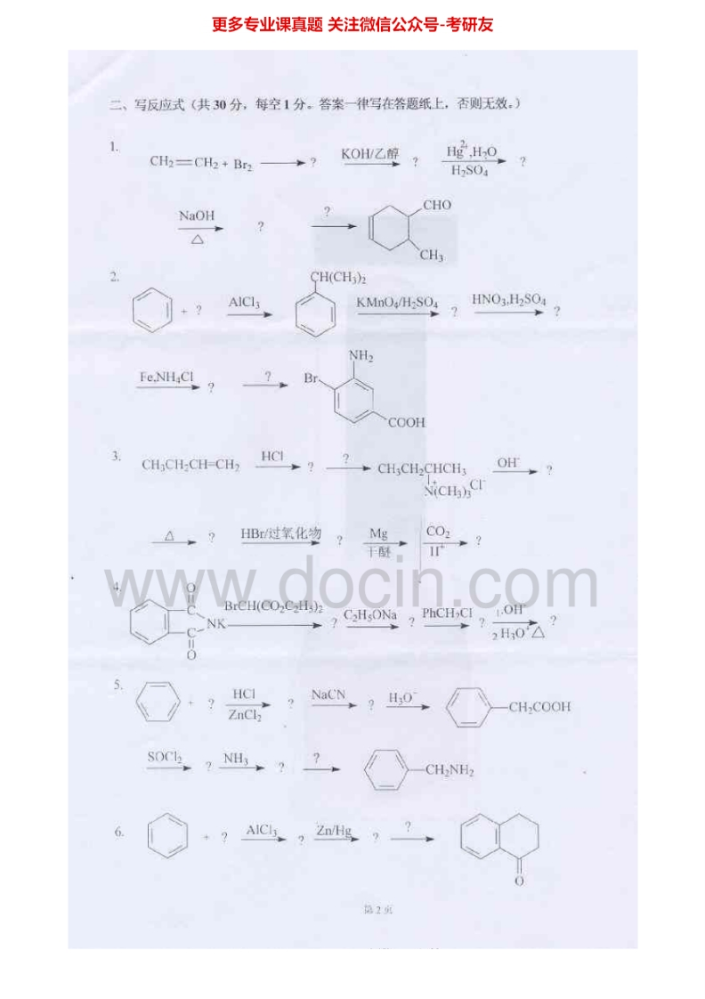 河北工业大学751有机化学(Ⅰ)2007-2008、2010-2012考研真题汇编猴哥6个月前发布关注私信5.86MB24页05343河北工业大学751有机化学(Ⅰ)2007-2008、2010-2012考研真题汇编此内容为免费资源,请登录后查看¥0 登录查看免费资源 第1页 / 共24页 第2页 / 共24页 第3页 / 共24页 该文档为免费文档,您可直接下载完整版进行阅读 © 版权声明文章版权归作者所有,未经允许请勿转载。THE END考研专业课 喜欢就支持一下吧点赞43赞赏 分享QQ空间微博QQ好友海报分享复制链接收藏