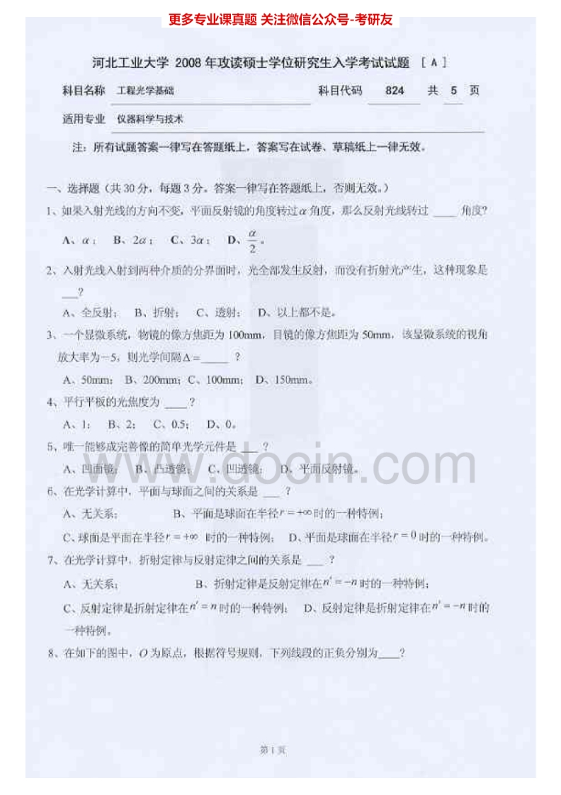河北工业大学822工程光学基础(Ⅰ)2007-2012考研真题汇编猴哥6个月前发布关注私信6.03MB18页04162河北工业大学822工程光学基础(Ⅰ)2007-2012考研真题汇编此内容为免费资源,请登录后查看¥0 登录查看免费资源 第1页 / 共18页 第2页 / 共18页 第3页 / 共18页 该文档为免费文档,您可直接下载完整版进行阅读 © 版权声明文章版权归作者所有,未经允许请勿转载。THE END《河北工业大学》(822)工程光学基础考研资料考研专业课 喜欢就支持一下吧点赞62赞赏 分享QQ空间微博QQ好友海报分享复制链接收藏