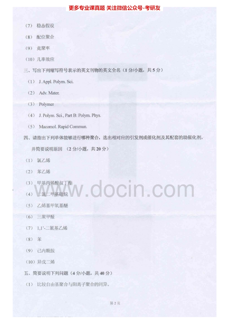 河北工业大学852高分子化学2007-2012考研真题汇编猴哥6个月前发布关注私信5.93MB16页06059河北工业大学852高分子化学2007-2012考研真题汇编此内容为免费资源,请登录后查看¥0 登录查看免费资源 第1页 / 共16页 第2页 / 共16页 第3页 / 共16页 该文档为免费文档,您可直接下载完整版进行阅读 © 版权声明文章版权归作者所有,未经允许请勿转载。THE END《河北工业大学》(852)流体力学考研资料考研专业课 喜欢就支持一下吧点赞59赞赏 分享QQ空间微博QQ好友海报分享复制链接收藏