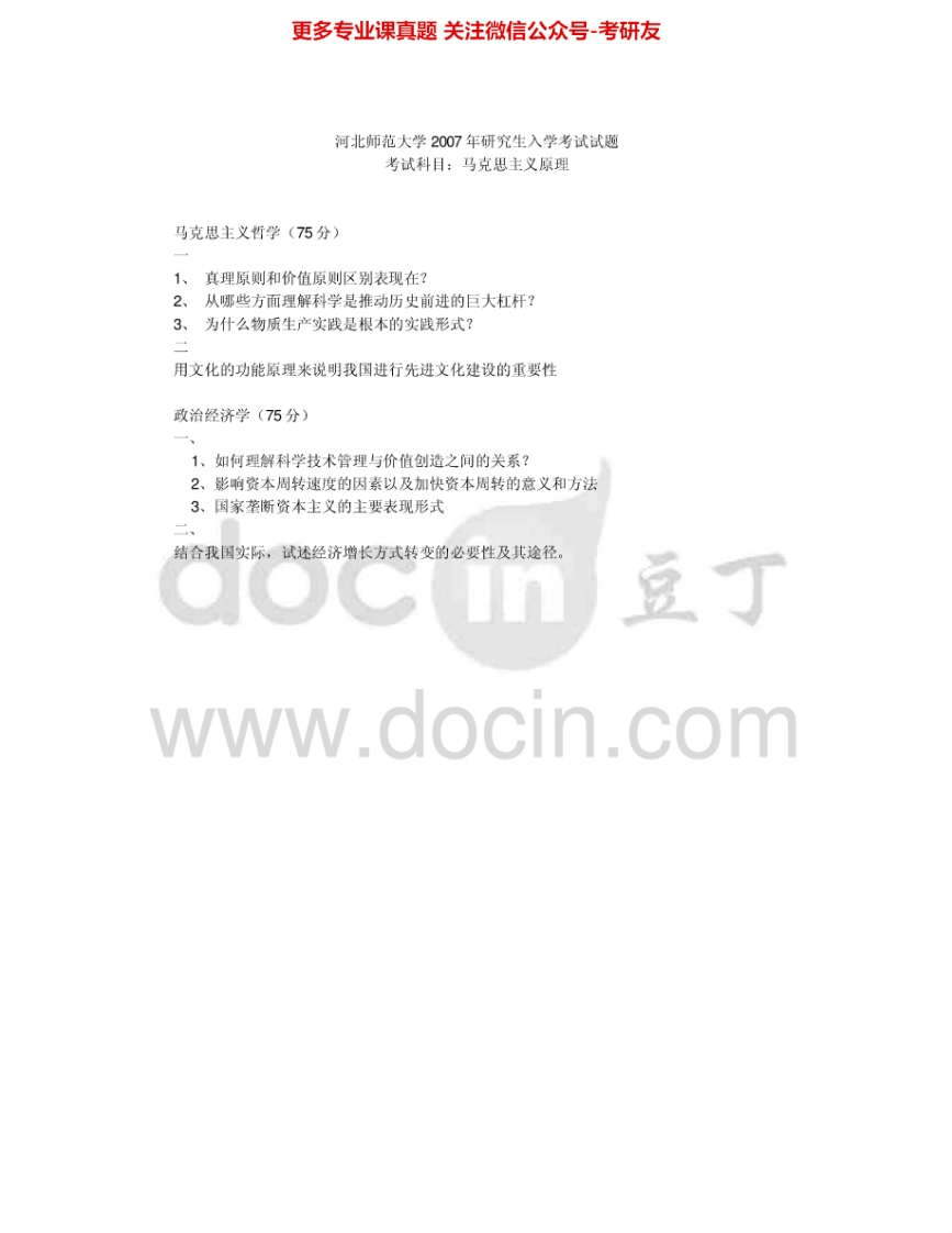河北师范大学704马克思主义原理2006-2007考研真题汇编猴哥6个月前发布关注私信101.49KB2页04624河北师范大学704马克思主义原理2006-2007考研真题汇编此内容为免费资源,请登录后查看¥0 登录查看免费资源 第1页 / 共2页 第2页 / 共2页 已完成全部阅读,共2页 © 版权声明文章版权归作者所有,未经允许请勿转载。THE END《河北师范大学》(704)政治学考研资料考研专业课 喜欢就支持一下吧点赞24赞赏 分享QQ空间微博QQ好友海报分享复制链接收藏