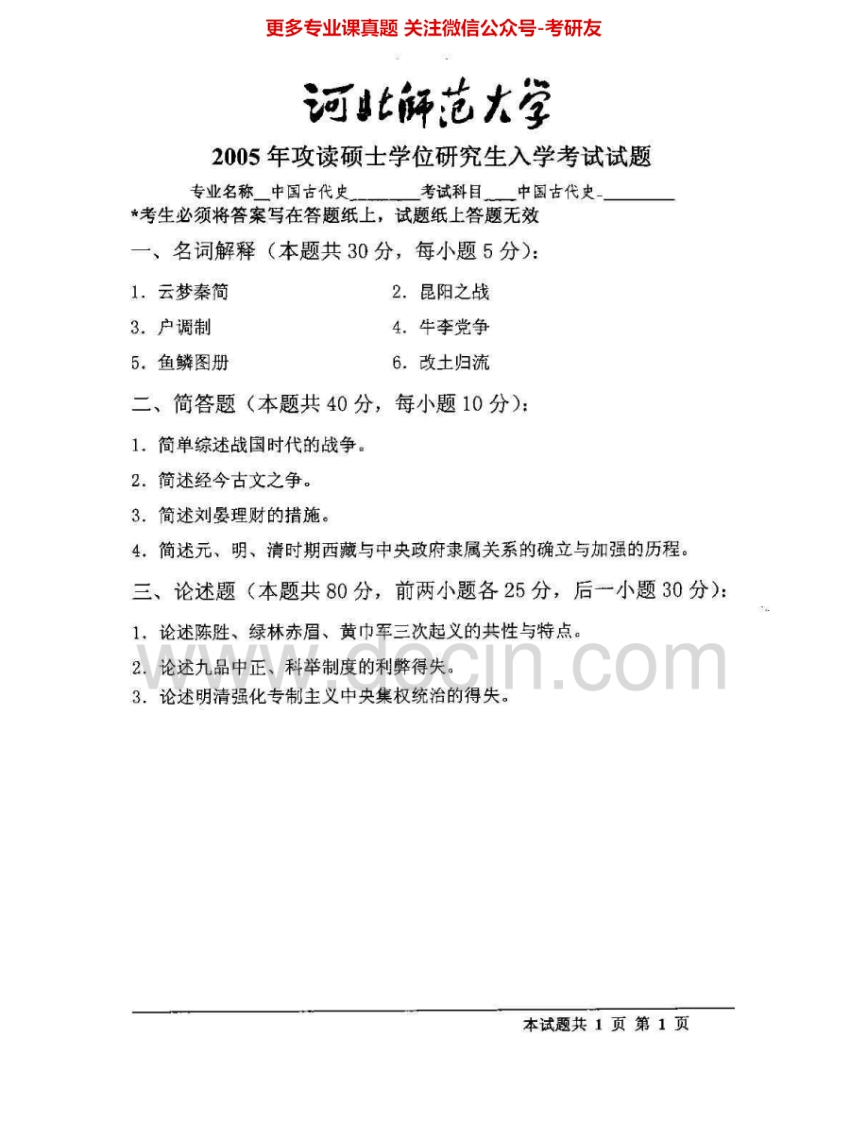 河北师范大学732中国古代史2004-2005年考研真题汇编猴哥6个月前发布关注私信0.76MB3页05021河北师范大学732中国古代史2004-2005年考研真题汇编此内容为免费资源,请登录后查看¥0 登录查看免费资源 第1页 / 共3页 第2页 / 共3页 第3页 / 共3页 已完成全部阅读,共3页 © 版权声明文章版权归作者所有,未经允许请勿转载。THE END考研专业课 喜欢就支持一下吧点赞21赞赏 分享QQ空间微博QQ好友海报分享复制链接收藏