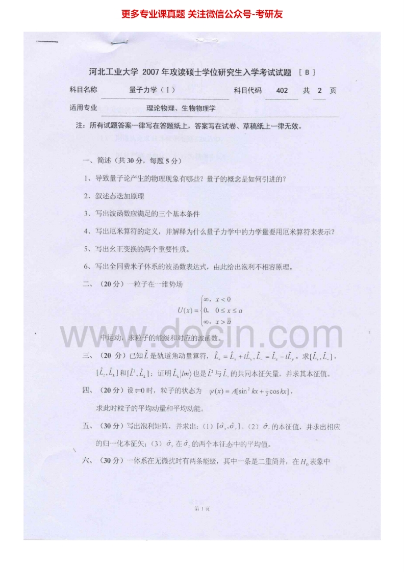 河北工业大学887量子力学(Ⅱ)2006-2012考研真题汇编猴哥6个月前发布关注私信3.87MB13页07026河北工业大学887量子力学(Ⅱ)2006-2012考研真题汇编此内容为免费资源,请登录后查看¥0 登录查看免费资源 第1页 / 共13页 第2页 / 共13页 第3页 / 共13页 该文档为免费文档,您可直接下载完整版进行阅读 © 版权声明文章版权归作者所有,未经允许请勿转载。THE END考研专业课 喜欢就支持一下吧点赞26赞赏 分享QQ空间微博QQ好友海报分享复制链接收藏