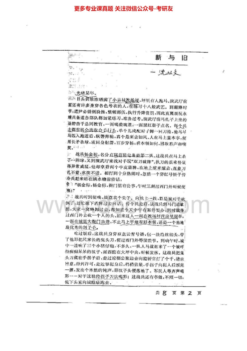 河北师范大学考研真题语言文学基础知识2004汉语言文学综合2004-2005文学评论写作2001、2005中国现当代文学2001、2003-2004中国文学史2003-2004考研猴哥6个月前发布关注私信6.64MB24页08841河北师范大学考研真题语言文学基础知识2004汉语言文学综合2004-2005文学评论写作2001、2005中国现当代文学2001、2003-2004中国文学史2003-2004考研此内容为免费资源,请登录后查看¥0 登录查看免费资源 第1页 / 共24页 第2页 / 共24页 第3页 / 共24页 该文档为免费文档,您可直接下载完整版进行阅读 © 版权声明文章版权归作者所有,未经允许请勿转载。THE END考研专业课 喜欢就支持一下吧点赞41赞赏 分享QQ空间微博QQ好友海报分享复制链接收藏