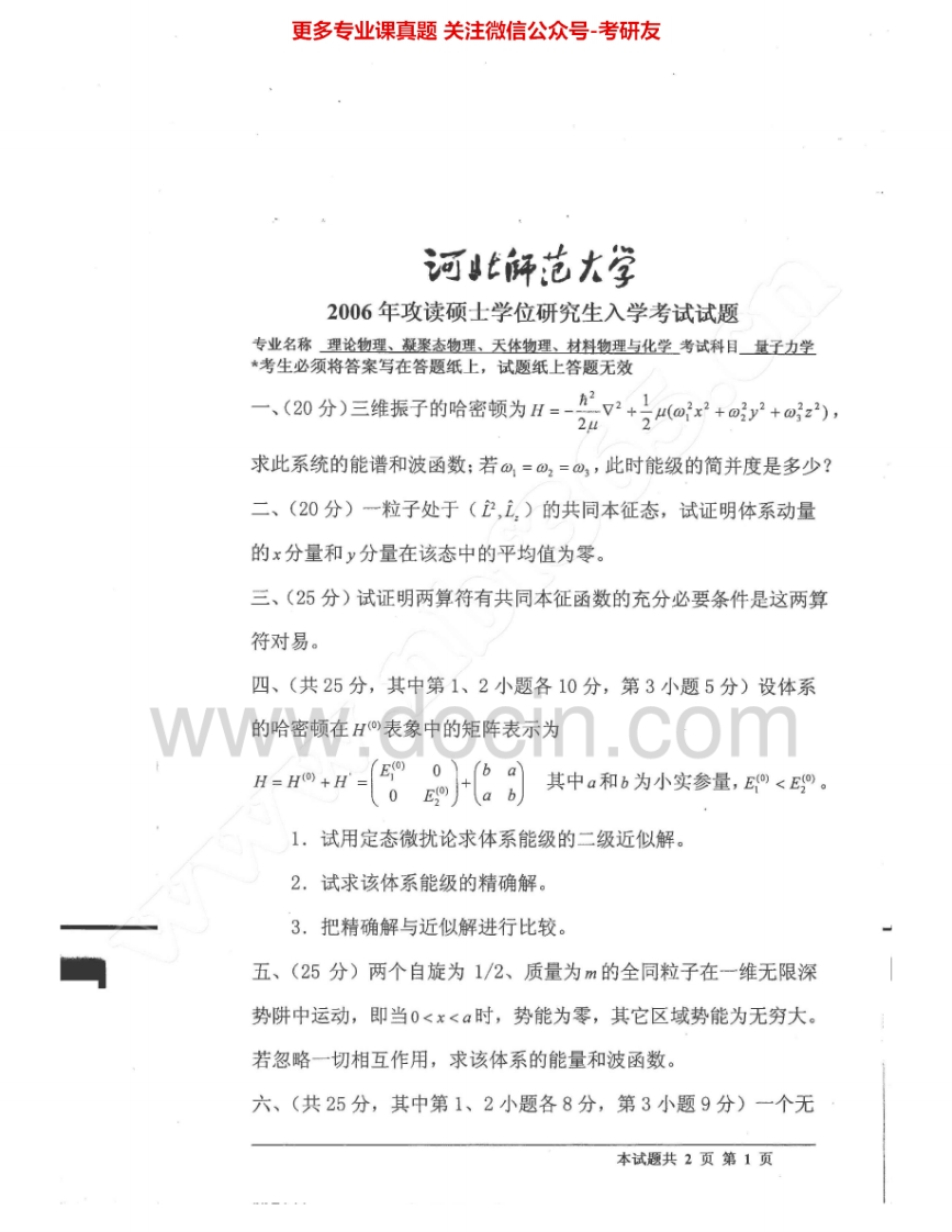 河北师范大学821量子力学2004、2006-2008考研真题汇编猴哥6个月前发布关注私信1.06MB8页04019河北师范大学821量子力学2004、2006-2008考研真题汇编此内容为免费资源,请登录后查看¥0 登录查看免费资源 第1页 / 共8页 第2页 / 共8页 第3页 / 共8页 该文档为免费文档,您可直接下载完整版进行阅读 © 版权声明文章版权归作者所有,未经允许请勿转载。THE END《河北师范大学》(821)高等代数考研资料考研专业课 喜欢就支持一下吧点赞19赞赏 分享QQ空间微博QQ好友海报分享复制链接收藏
