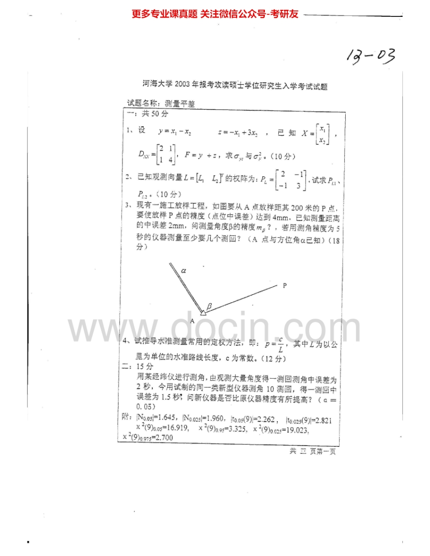 河海大学820测量平差2002-2008考研真题汇编猴哥6个月前发布关注私信3.84MB20页08650河海大学820测量平差2002-2008考研真题汇编此内容为免费资源,请登录后查看¥0 登录查看免费资源 第1页 / 共20页 第2页 / 共20页 第3页 / 共20页 该文档为免费文档,您可直接下载完整版进行阅读 © 版权声明文章版权归作者所有,未经允许请勿转载。THE END《河海大学》(820)测量平差考研资料考研专业课 喜欢就支持一下吧点赞50赞赏 分享QQ空间微博QQ好友海报分享复制链接收藏