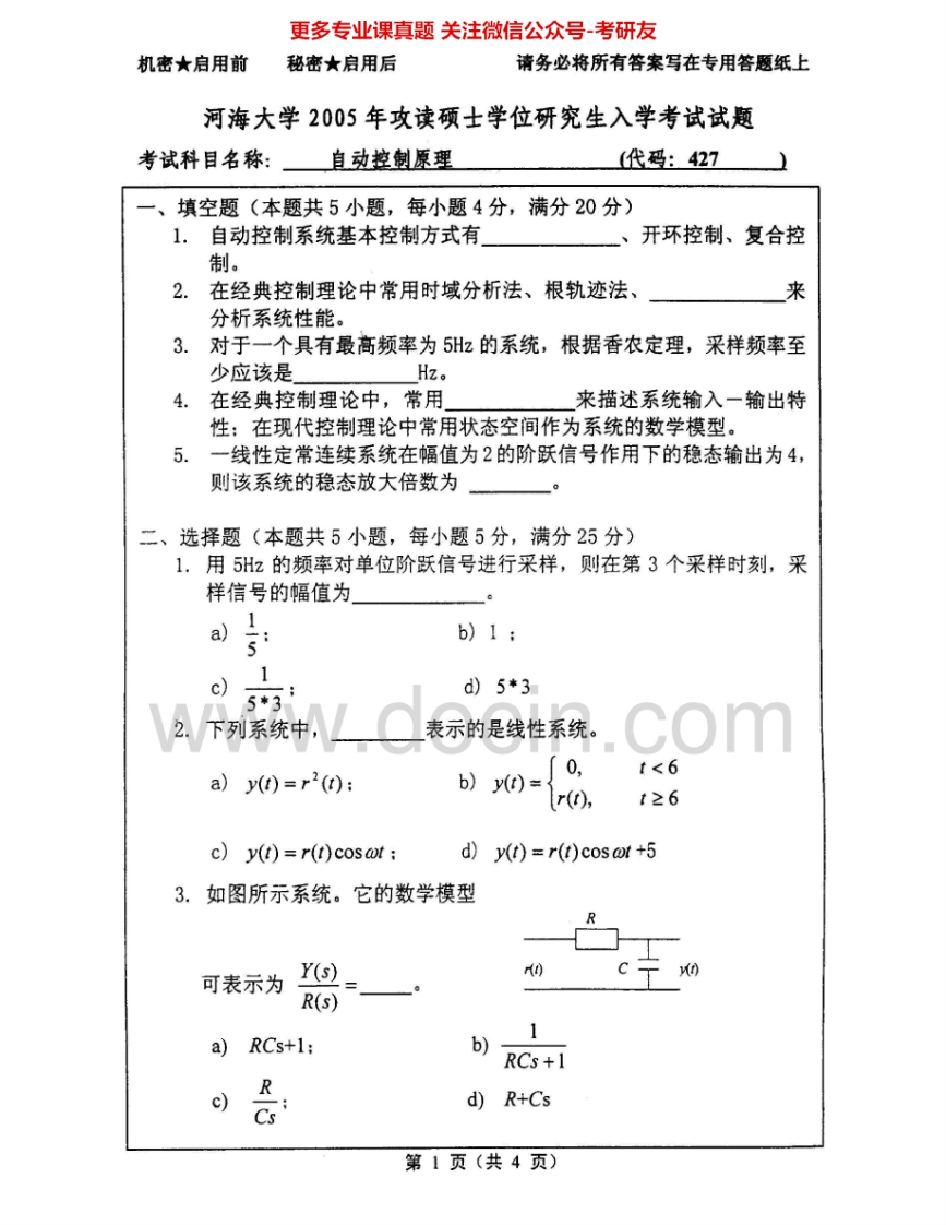河海大学827自动控制原理基础2000、2005-2007考研真题汇编猴哥6个月前发布关注私信3.01MB14页07514河海大学827自动控制原理基础2000、2005-2007考研真题汇编此内容为免费资源,请登录后查看¥0 登录查看免费资源 第1页 / 共14页 第2页 / 共14页 第3页 / 共14页 该文档为免费文档,您可直接下载完整版进行阅读 © 版权声明文章版权归作者所有,未经允许请勿转载。THE END《河海大学》(827)自动控制理论基础考研资料考研专业课 喜欢就支持一下吧点赞14赞赏 分享QQ空间微博QQ好友海报分享复制链接收藏