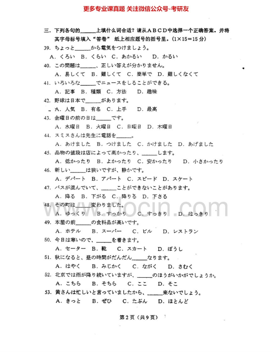 河海大学243日语(二外)2004-2005、2007-2008考研真题汇编猴哥6个月前发布关注私信7.53MB31页06539河海大学243日语(二外)2004-2005、2007-2008考研真题汇编此内容为免费资源,请登录后查看¥0 登录查看免费资源 第1页 / 共31页 第2页 / 共31页 第3页 / 共31页 该文档为免费文档,您可直接下载完整版进行阅读 © 版权声明文章版权归作者所有,未经允许请勿转载。THE END考研专业课 喜欢就支持一下吧点赞39赞赏 分享QQ空间微博QQ好友海报分享复制链接收藏