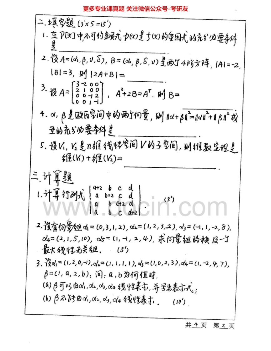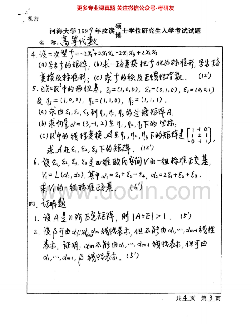 河海大学861高等代数2000-2008考研真题汇编猴哥6个月前发布关注私信5.68MB27页09049河海大学861高等代数2000-2008考研真题汇编此内容为免费资源,请登录后查看¥0 登录查看免费资源 第1页 / 共27页 第2页 / 共27页 第3页 / 共27页 该文档为免费文档,您可直接下载完整版进行阅读 © 版权声明文章版权归作者所有,未经允许请勿转载。THE END《河海大学》(861)高等代数考研资料考研专业课 喜欢就支持一下吧点赞49赞赏 分享QQ空间微博QQ好友海报分享复制链接收藏