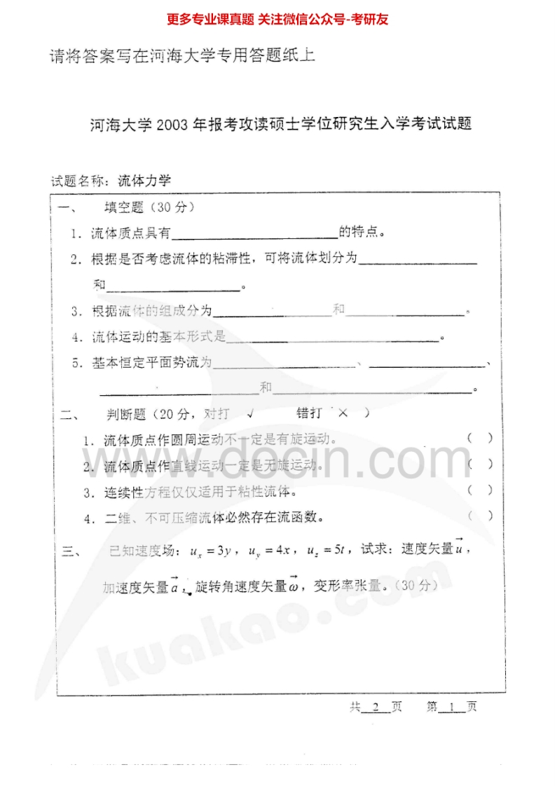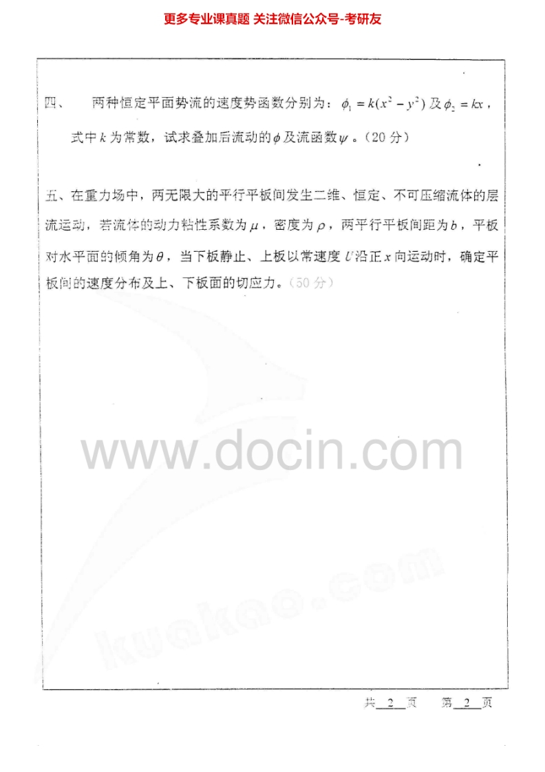 河海大学流体力学2002-2005、2008考研真题汇编猴哥6个月前发布关注私信1.38MB6页09520河海大学流体力学2002-2005、2008考研真题汇编此内容为免费资源,请登录后查看¥0 登录查看免费资源 第1页 / 共6页 第2页 / 共6页 第3页 / 共6页 该文档为免费文档,您可直接下载完整版进行阅读 © 版权声明文章版权归作者所有,未经允许请勿转载。THE END考研专业课 喜欢就支持一下吧点赞20赞赏 分享QQ空间微博QQ好友海报分享复制链接收藏