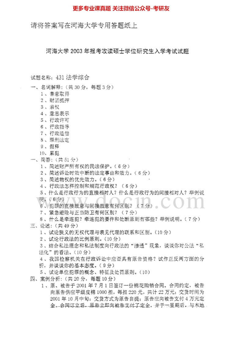 河海大学法学综合(1)(含法理学、行政法学不含行政诉讼法学)历年真题法学综合2002-2008法理学2002-2008考研真题汇编猴哥6个月前发布关注私信6.77MB23页09117河海大学法学综合(1)(含法理学、行政法学不含行政诉讼法学)历年真题法学综合2002-2008法理学2002-2008考研真题汇编此内容为免费资源,请登录后查看¥0 登录查看免费资源 第1页 / 共23页 第2页 / 共23页 第3页 / 共23页 该文档为免费文档,您可直接下载完整版进行阅读 © 版权声明文章版权归作者所有,未经允许请勿转载。THE END考研专业课 喜欢就支持一下吧点赞17赞赏 分享QQ空间微博QQ好友海报分享复制链接收藏