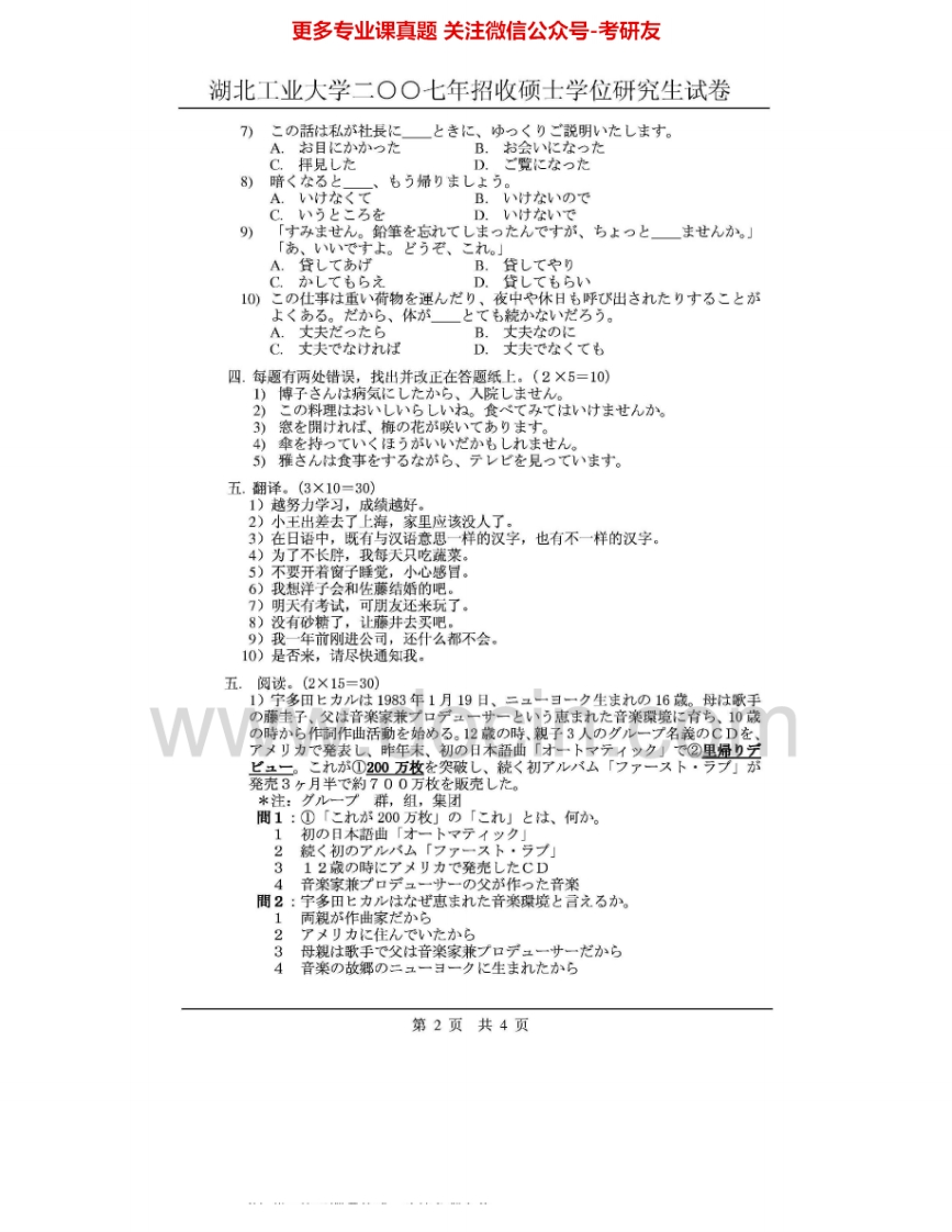 湖北工业大学287日语2007-2009考研真题汇编猴哥6个月前发布关注私信2.11MB19页09249湖北工业大学287日语2007-2009考研真题汇编此内容为免费资源,请登录后查看¥0 登录查看免费资源 第1页 / 共19页 第2页 / 共19页 第3页 / 共19页 该文档为免费文档,您可直接下载完整版进行阅读 © 版权声明文章版权归作者所有,未经允许请勿转载。THE END考研专业课 喜欢就支持一下吧点赞49赞赏 分享QQ空间微博QQ好友海报分享复制链接收藏