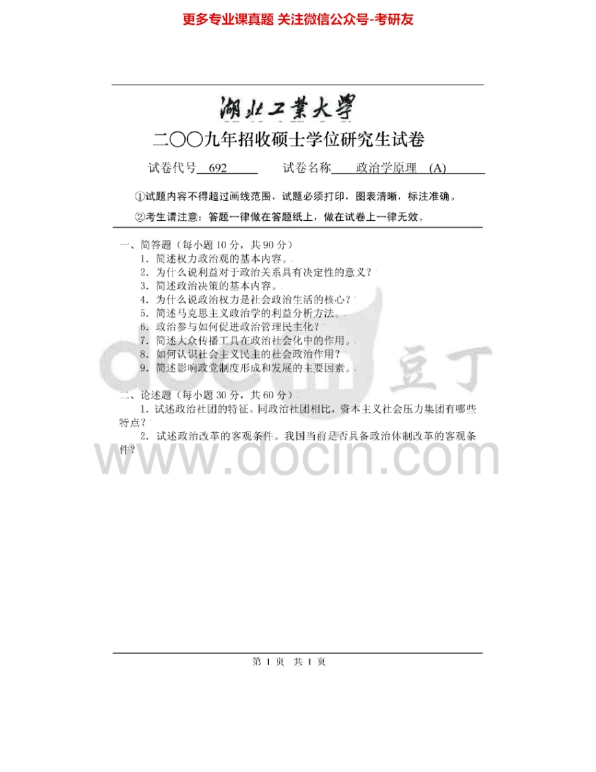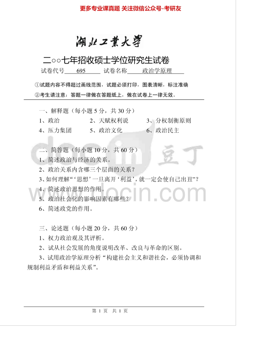 湖北工业大学692政治学原理2006-2007、2009考研真题汇编猴哥6个月前发布关注私信0.47MB3页07457湖北工业大学692政治学原理2006-2007、2009考研真题汇编此内容为免费资源,请登录后查看¥0 登录查看免费资源 第1页 / 共3页 第2页 / 共3页 第3页 / 共3页 已完成全部阅读,共3页 © 版权声明文章版权归作者所有,未经允许请勿转载。THE END考研专业课 喜欢就支持一下吧点赞57赞赏 分享QQ空间微博QQ好友海报分享复制链接收藏