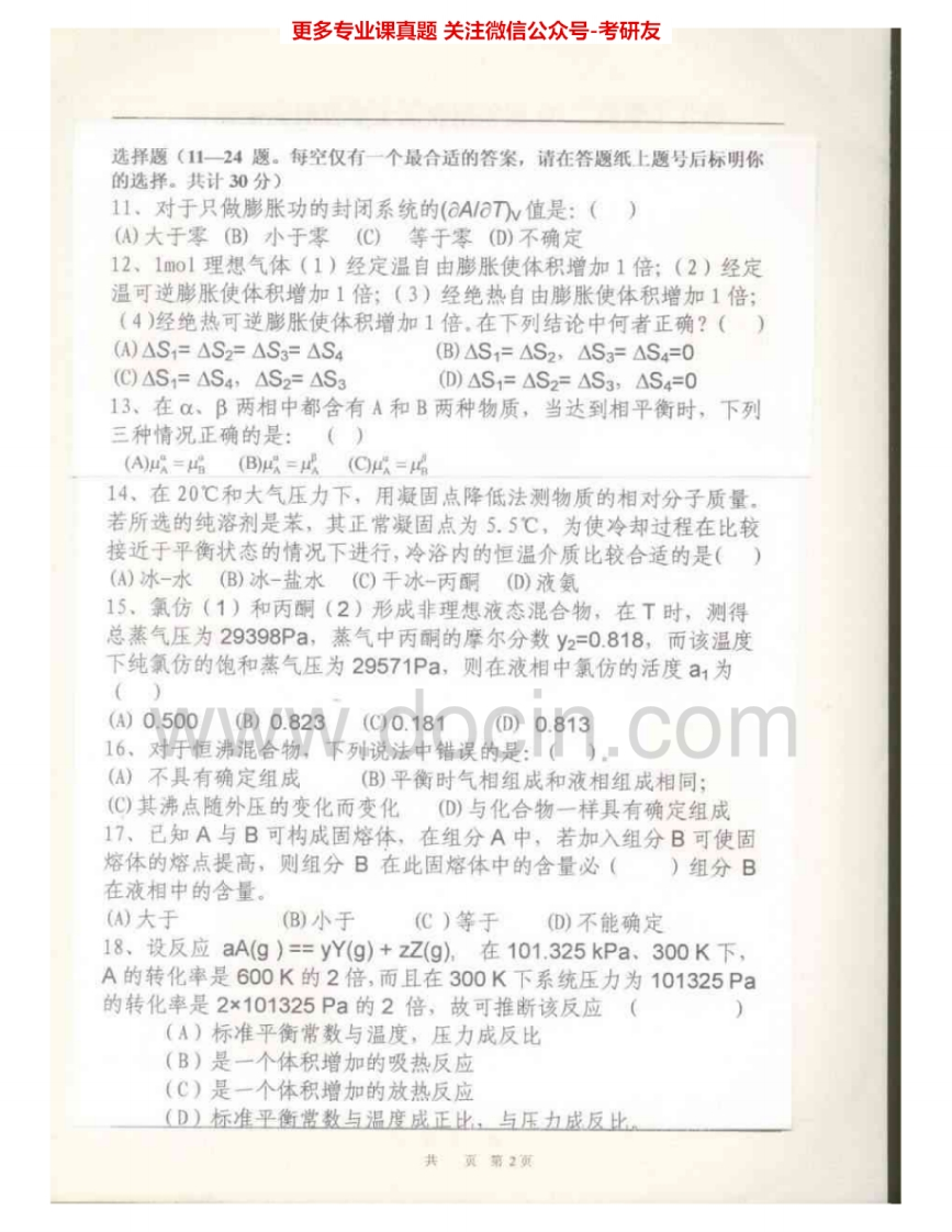 湖北工业大学912物理化学2004-2008、2009AB考研真题汇编猴哥6个月前发布关注私信6.18MB30页05939湖北工业大学912物理化学2004-2008、2009AB考研真题汇编此内容为免费资源,请登录后查看¥0 登录查看免费资源 第1页 / 共30页 第2页 / 共30页 第3页 / 共30页 该文档为免费文档,您可直接下载完整版进行阅读 © 版权声明文章版权归作者所有,未经允许请勿转载。THE END《湖北工业大学》(912)物理化学考研资料考研专业课 喜欢就支持一下吧点赞39赞赏 分享QQ空间微博QQ好友海报分享复制链接收藏