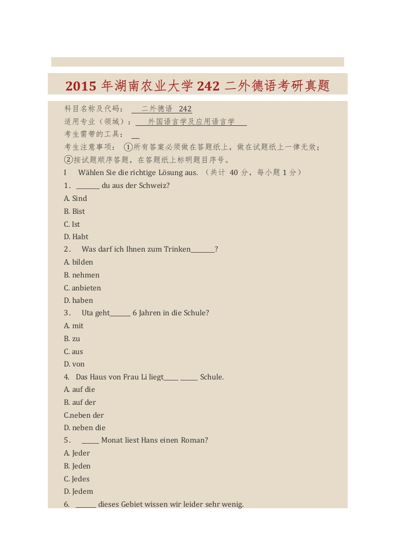 湖南农业大学外国语学院242二外德语历年考研真题汇编猴哥6个月前发布关注私信1.70MB53页07428湖南农业大学外国语学院242二外德语历年考研真题汇编此内容为免费资源,请登录后查看¥0 登录查看免费资源 第1页 / 共53页 第2页 / 共53页 第3页 / 共53页 该文档为免费文档,您可直接下载完整版进行阅读 © 版权声明文章版权归作者所有,未经允许请勿转载。THE END考研专业课 喜欢就支持一下吧点赞28赞赏 分享QQ空间微博QQ好友海报分享复制链接收藏