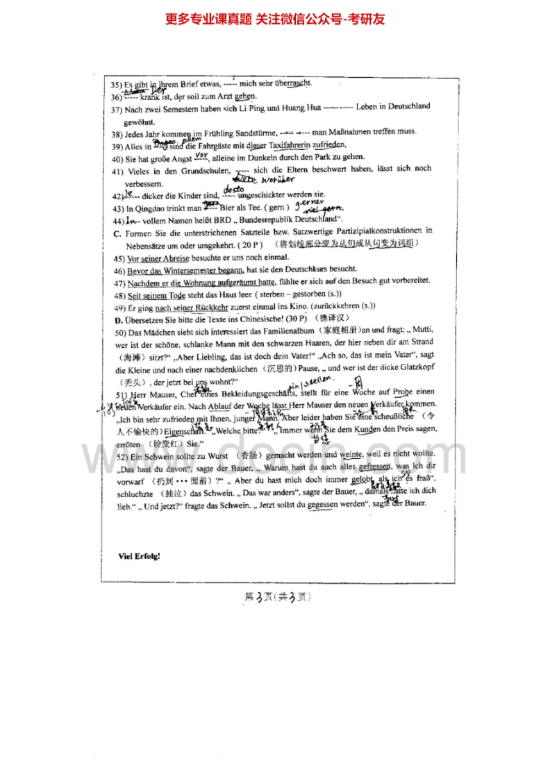 湖南师范大学224二外德语2004年考研真题猴哥6个月前发布关注私信0.88MB3页08524湖南师范大学224二外德语2004年考研真题此内容为免费资源,请登录后查看¥0 登录查看免费资源 第1页 / 共3页 第2页 / 共3页 第3页 / 共3页 已完成全部阅读,共3页 © 版权声明文章版权归作者所有,未经允许请勿转载。THE END考研专业课 喜欢就支持一下吧点赞24赞赏 分享QQ空间微博QQ好友海报分享复制链接收藏