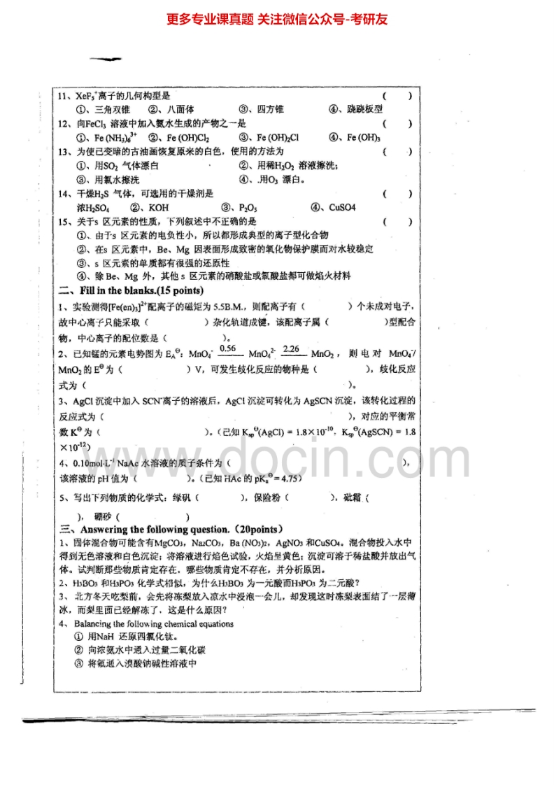 湖南师范大学无机化学历年真题2006-20072006-2007有答案考研真题汇编.Image.Marked猴哥6个月前发布关注私信3.65MB11页04323湖南师范大学无机化学历年真题2006-20072006-2007有答案考研真题汇编.Image.Marked此内容为免费资源,请登录后查看¥0 登录查看免费资源 第1页 / 共11页 第2页 / 共11页 第3页 / 共11页 该文档为免费文档,您可直接下载完整版进行阅读 © 版权声明文章版权归作者所有,未经允许请勿转载。THE END考研专业课 喜欢就支持一下吧点赞23赞赏 分享QQ空间微博QQ好友海报分享复制链接收藏