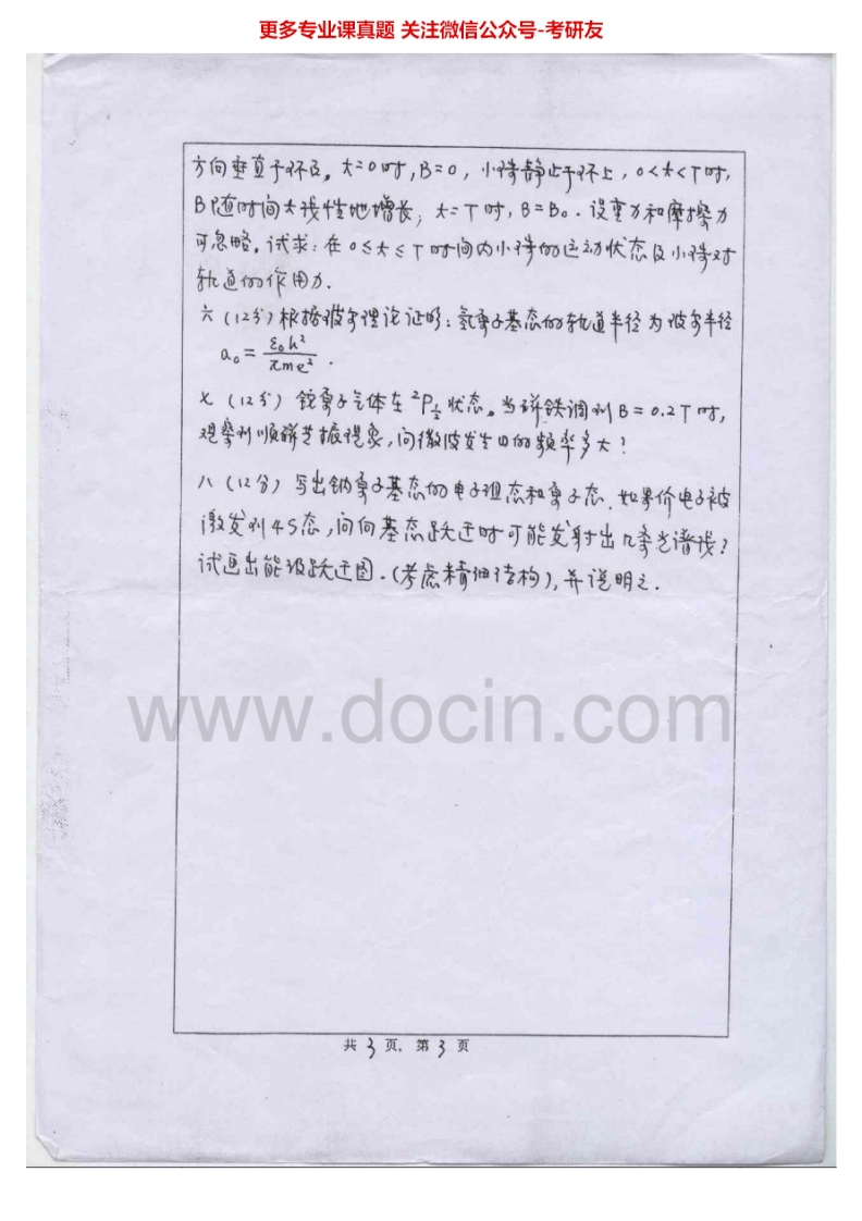 湖南师范大学普通物理(电磁学、光学、原子物理)2005-2006、2009汇编考研真题考研真题汇编.Image.Marked猴哥6个月前发布关注私信4.90MB8页06619湖南师范大学普通物理(电磁学、光学、原子物理)2005-2006、2009汇编考研真题考研真题汇编.Image.Marked此内容为免费资源,请登录后查看¥0 登录查看免费资源 第1页 / 共8页 第2页 / 共8页 第3页 / 共8页 该文档为免费文档,您可直接下载完整版进行阅读 © 版权声明文章版权归作者所有,未经允许请勿转载。THE END考研专业课 喜欢就支持一下吧点赞19赞赏 分享QQ空间微博QQ好友海报分享复制链接收藏
