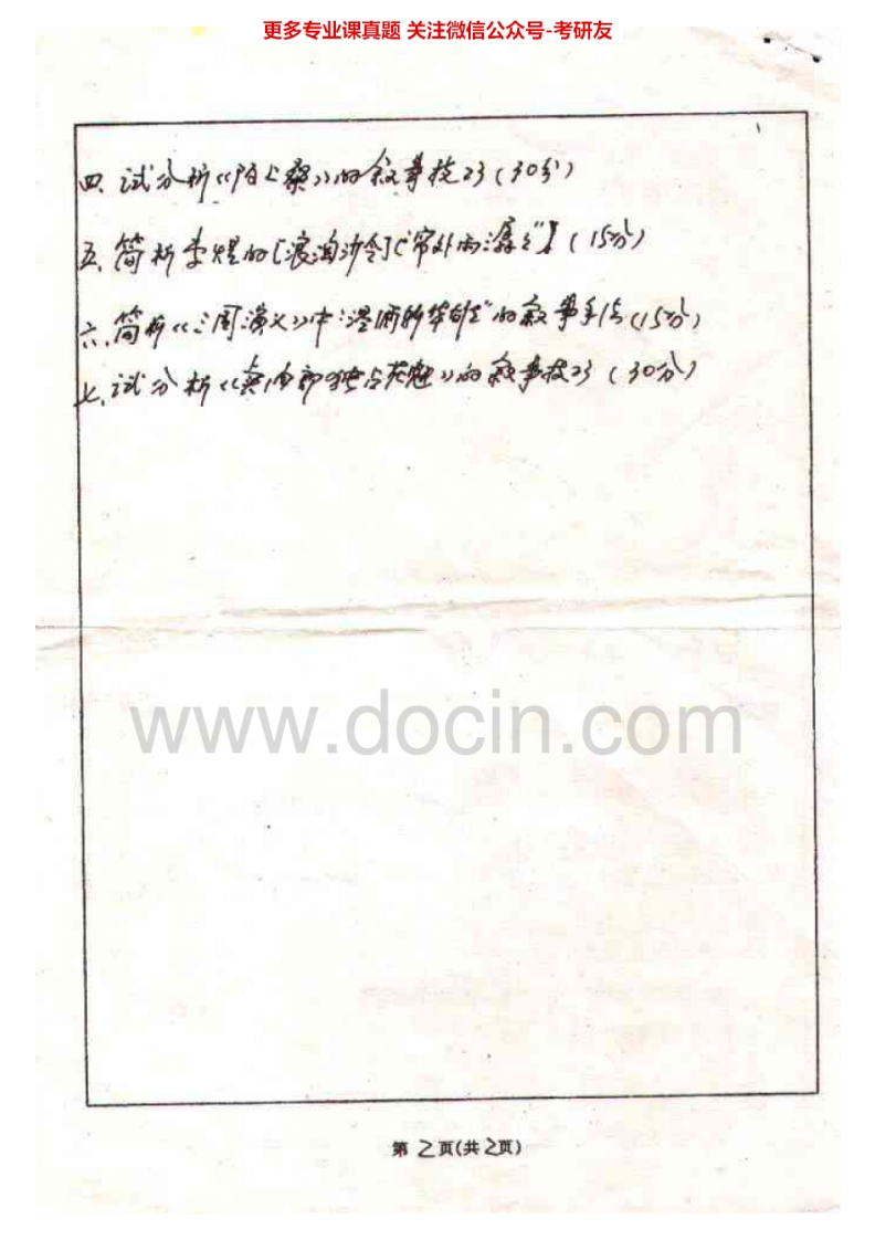 湖南师范大学古代文学作品阅读分析历年真题2003-2009、2012-2014考研真题汇编.Image.Marked猴哥6个月前发布关注私信6.37MB18页09948湖南师范大学古代文学作品阅读分析历年真题2003-2009、2012-2014考研真题汇编.Image.Marked此内容为免费资源,请登录后查看¥0 登录查看免费资源 第1页 / 共18页 第2页 / 共18页 第3页 / 共18页 该文档为免费文档,您可直接下载完整版进行阅读 © 版权声明文章版权归作者所有,未经允许请勿转载。THE END考研专业课 喜欢就支持一下吧点赞48赞赏 分享QQ空间微博QQ好友海报分享复制链接收藏