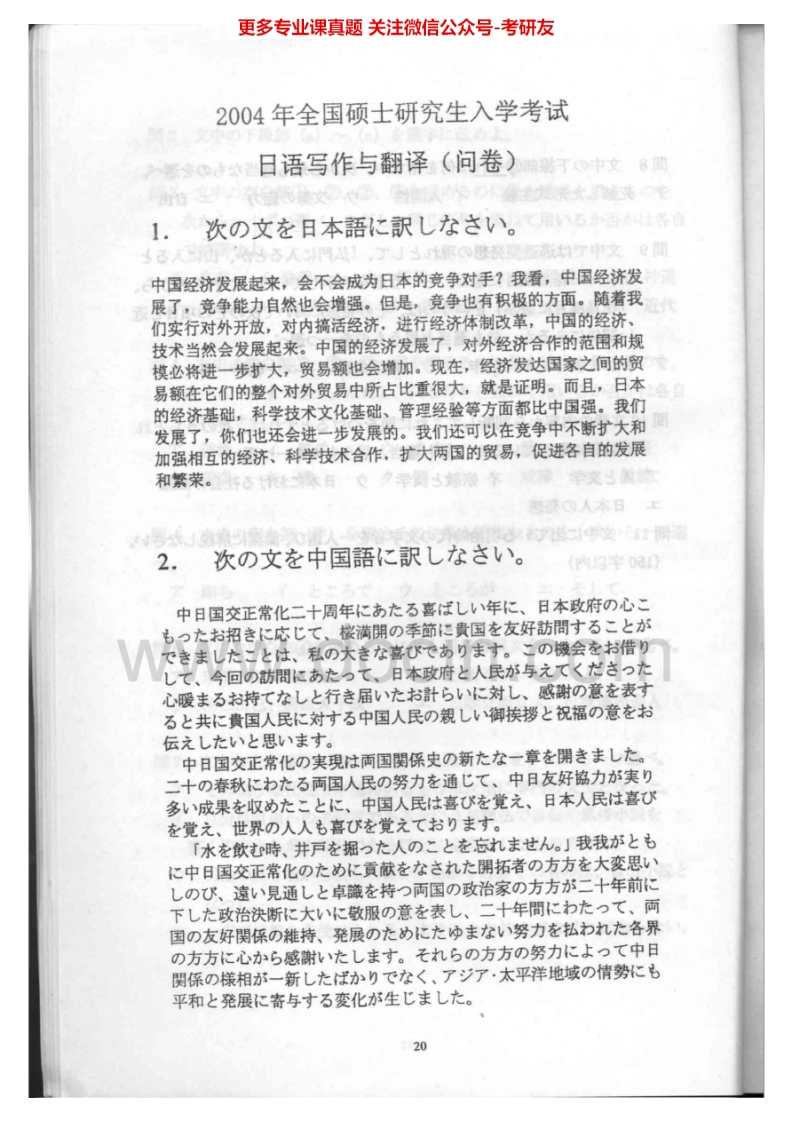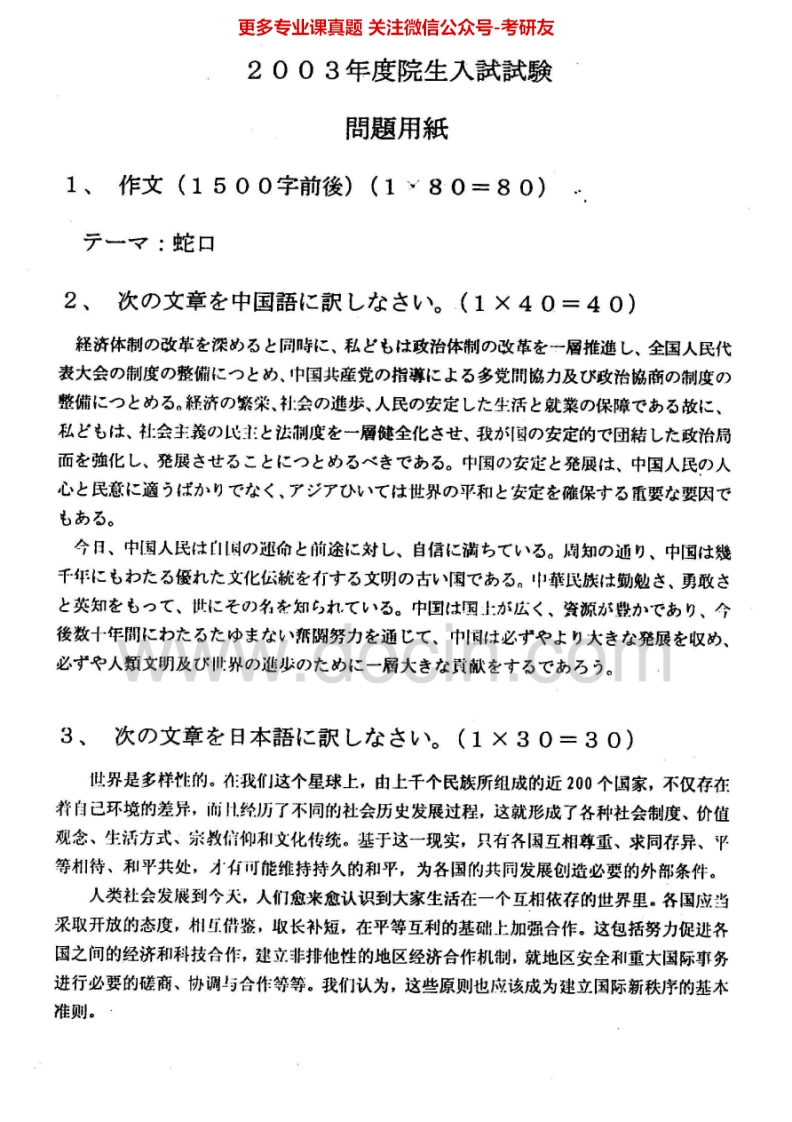 广东外语外贸大学806日语写作与翻译2003-2004考研真题汇编.Image.Marked猴哥6个月前发布关注私信2.85MB6页06728广东外语外贸大学806日语写作与翻译2003-2004考研真题汇编.Image.Marked此内容为免费资源,请登录后查看¥0 登录查看免费资源 第1页 / 共6页 第2页 / 共6页 第3页 / 共6页 该文档为免费文档,您可直接下载完整版进行阅读 © 版权声明文章版权归作者所有,未经允许请勿转载。THE END《广东外语外贸大学》(806)日语写作与翻译考研资料考研专业课 喜欢就支持一下吧点赞28赞赏 分享QQ空间微博QQ好友海报分享复制链接收藏