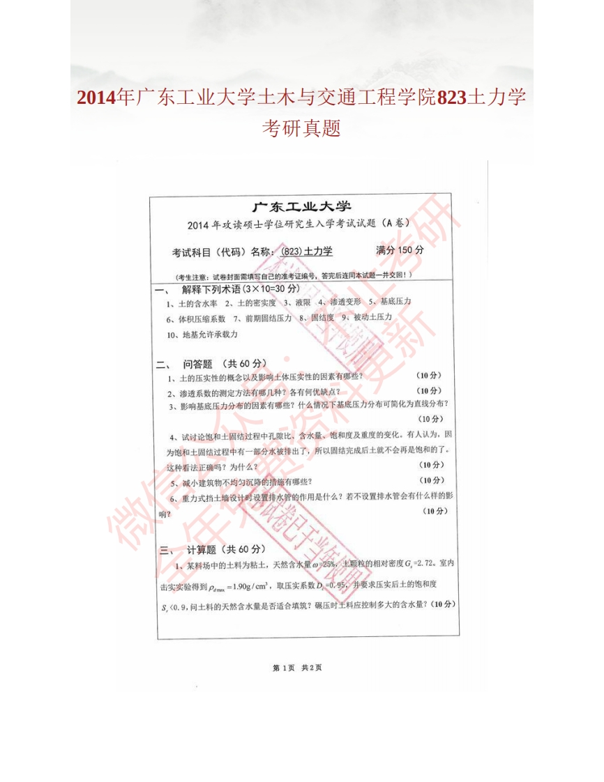 广东工业大学土木与交通工程学院823土力学历年考研真题公众号:硕识考研免费提供请勿付费购买倒卖商_1猴哥6个月前发布关注私信1.61MB14页03620广东工业大学土木与交通工程学院823土力学历年考研真题公众号:硕识考研免费提供请勿付费购买倒卖商_1此内容为免费资源,请登录后查看¥0 登录查看免费资源 第1页 / 共14页 第2页 / 共14页 第3页 / 共14页 该文档为免费文档,您可直接下载完整版进行阅读 © 版权声明文章版权归作者所有,未经允许请勿转载。THE END考研专业课 喜欢就支持一下吧点赞20赞赏 分享QQ空间微博QQ好友海报分享复制链接收藏