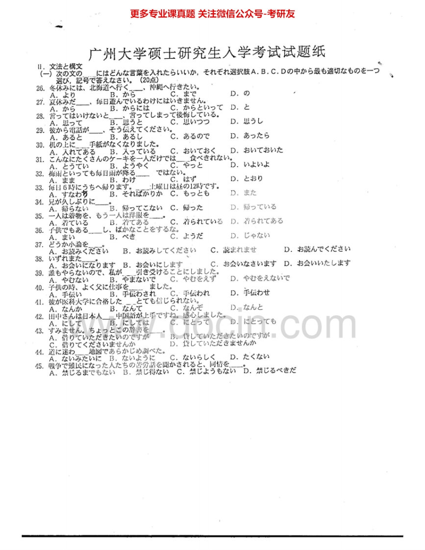 广州大学241日语2001-2004考研真题汇编-学习资源网 - 分享优质学习资料