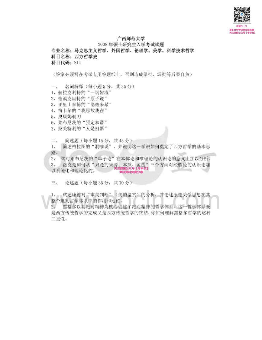 广西师范大学811西方哲学史2007-2008考研真题汇编猴哥6个月前发布关注私信0.30MB2页03952广西师范大学811西方哲学史2007-2008考研真题汇编此内容为免费资源,请登录后查看¥0 登录查看免费资源 第1页 / 共2页 第2页 / 共2页 已完成全部阅读,共2页 © 版权声明文章版权归作者所有,未经允许请勿转载。THE END《广西师范大学》(811)西方哲学史考研资料考研专业课 喜欢就支持一下吧点赞52赞赏 分享QQ空间微博QQ好友海报分享复制链接收藏