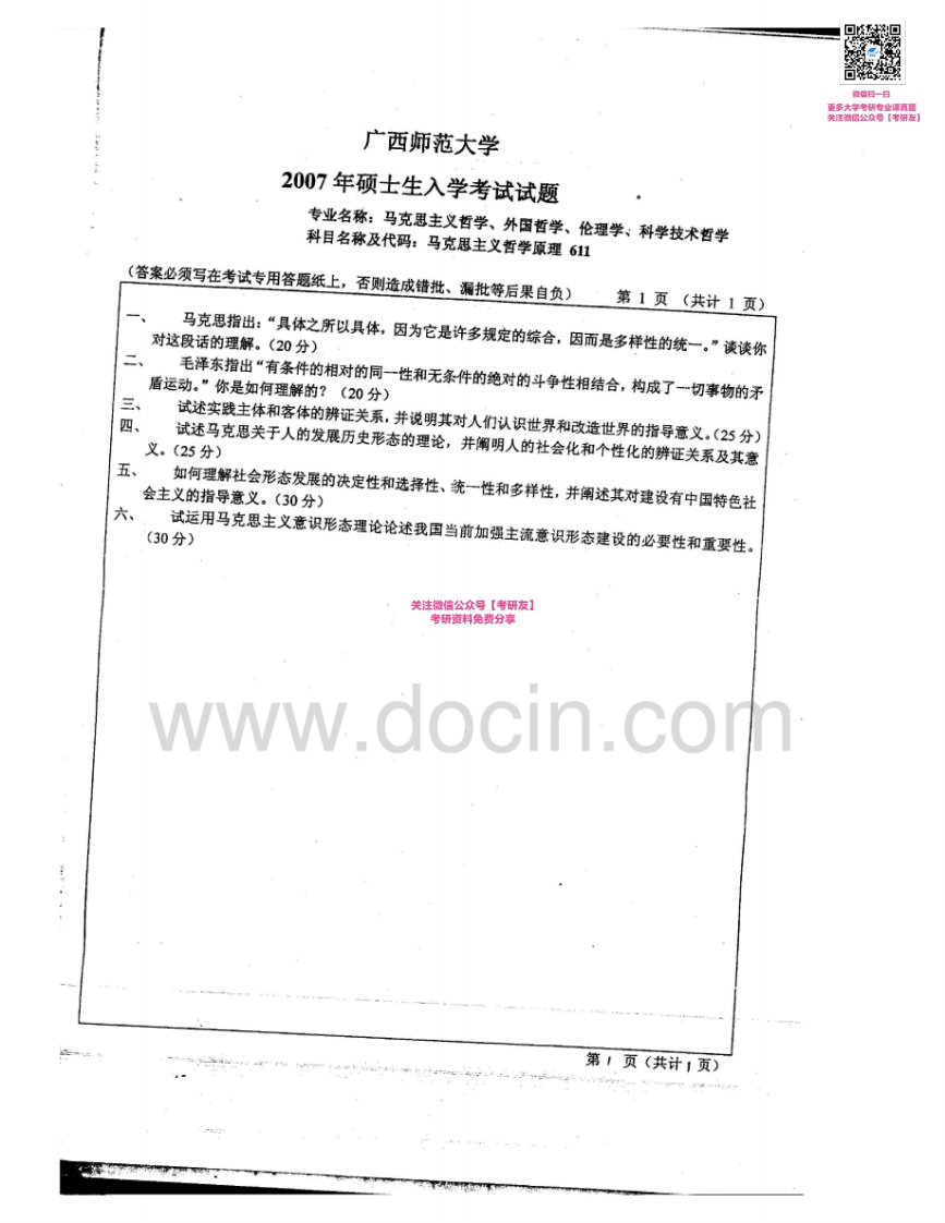 广西师范大学611马克思主义哲学原理2002-2003、2006-2007考研真题汇编_1猴哥6个月前发布关注私信0.87MB4页03823广西师范大学611马克思主义哲学原理2002-2003、2006-2007考研真题汇编_1此内容为免费资源,请登录后查看¥0 登录查看免费资源 第1页 / 共4页 第2页 / 共4页 第3页 / 共4页 该文档为免费文档,您可直接下载完整版进行阅读 © 版权声明文章版权归作者所有,未经允许请勿转载。THE END《广西师范大学》(611)马克思主义哲学原理考研资料考研专业课 喜欢就支持一下吧点赞23赞赏 分享QQ空间微博QQ好友海报分享复制链接收藏