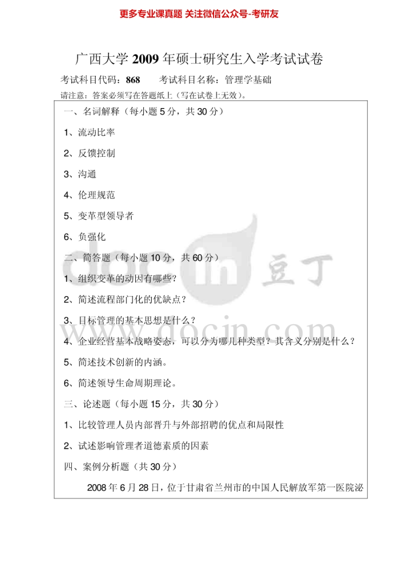 广西大学管理学基础2008-2012、回忆版2013考研真题汇编.Image.Marked猴哥6个月前发布关注私信0.91MB13页05513广西大学管理学基础2008-2012、回忆版2013考研真题汇编.Image.Marked此内容为免费资源,请登录后查看¥0 登录查看免费资源 第1页 / 共13页 第2页 / 共13页 第3页 / 共13页 该文档为免费文档,您可直接下载完整版进行阅读 © 版权声明文章版权归作者所有,未经允许请勿转载。THE END考研专业课 喜欢就支持一下吧点赞13赞赏 分享QQ空间微博QQ好友海报分享复制链接收藏
